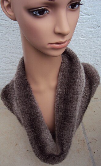 Das Garn ist sehr weich und deshalb auch am Hals angenehm. Für diesen Cowl wurden nur 25 g verbraucht. Er wird dann 24 cm hoch und hat einen Umfang von 56 cm.
