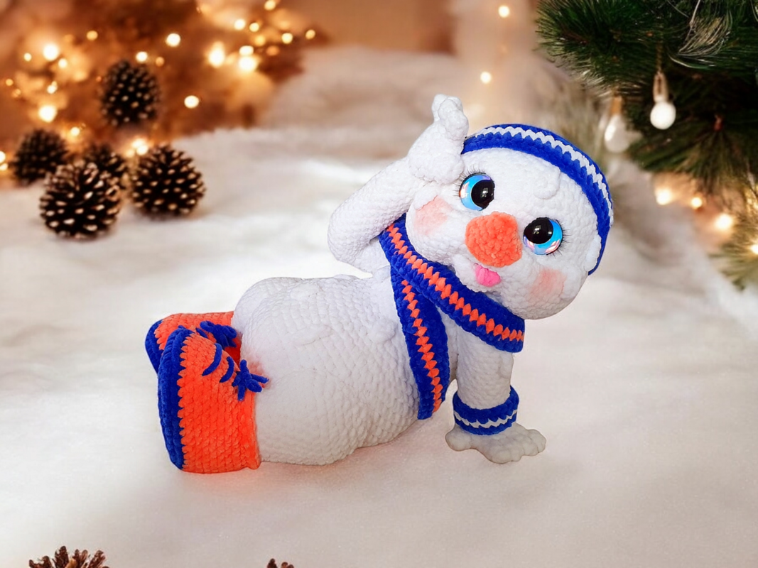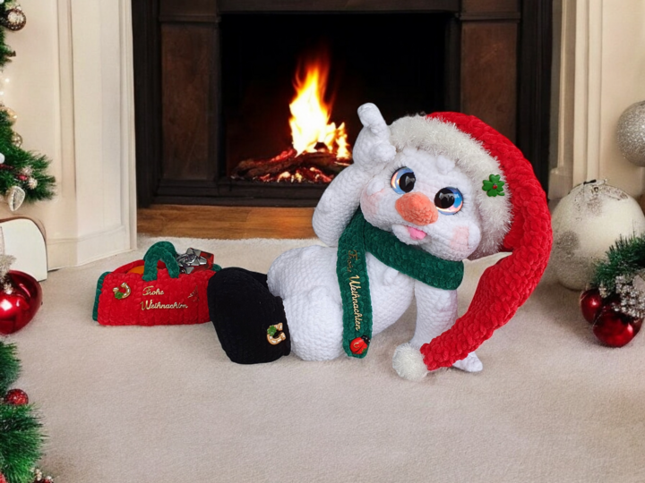 Auch als schmelzender Schneemann im Wohnzimmer sieht Coolius richtig niedlich aus. Seine Sporttasche lässt sich im Handumdrehen in eine weihnachtliche Tasche voll mit Mandarinen und Geschenken umfunktionieren.