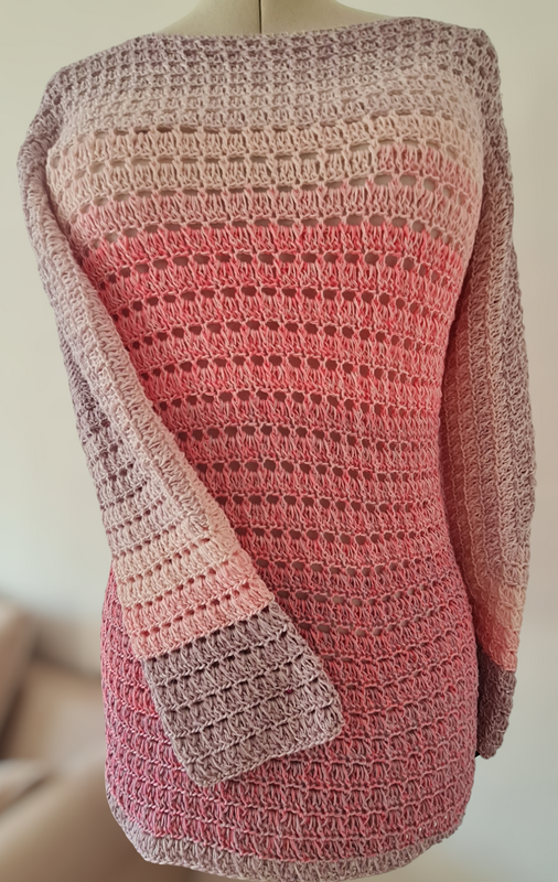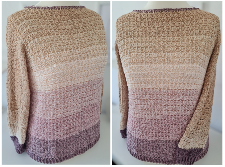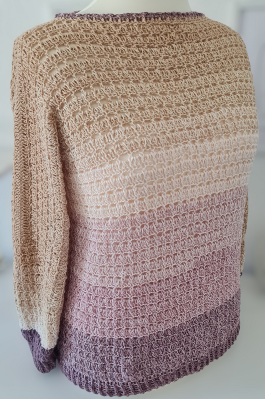 Der Pulli kann in jeder Größe gehäkelt werden. Wie das geht, ist in der Anleitung beschrieben.