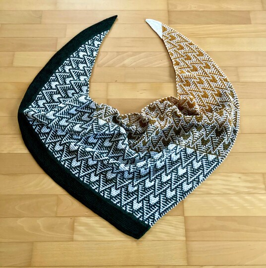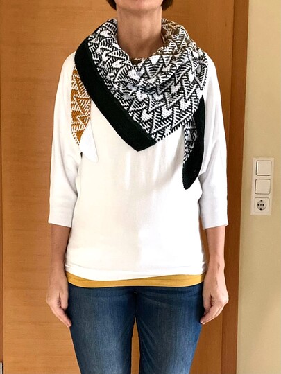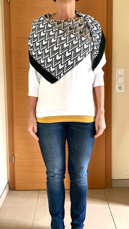 Es ist ein fast gleichschenkeliges und eher flaches Dreieckstuch