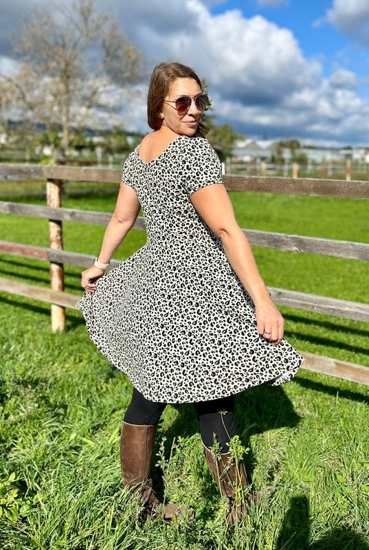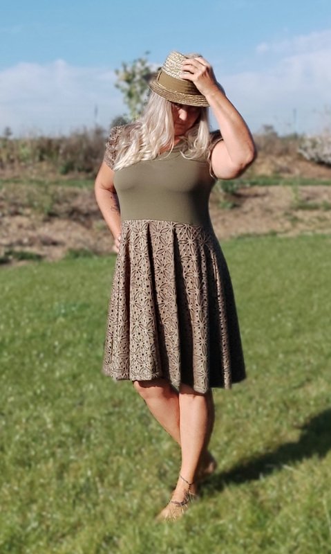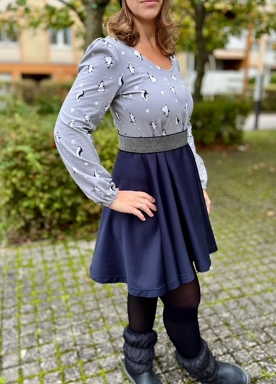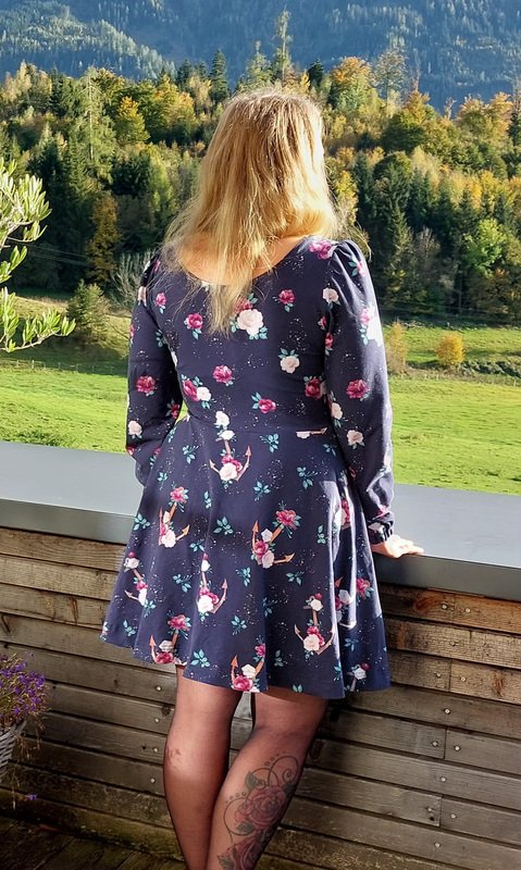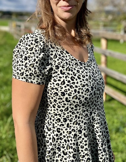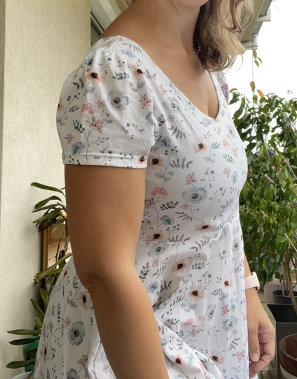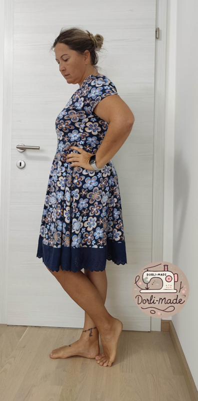 Die Ärmelabschlüsse sind gesäumt, und das Oberteil wird mit einem Beleg verstärkt. Du kannst das Kleid entweder schlicht mit einem Saum nähen oder mit einer breiten Spitze oder einer verspielten Rüsche verzieren.