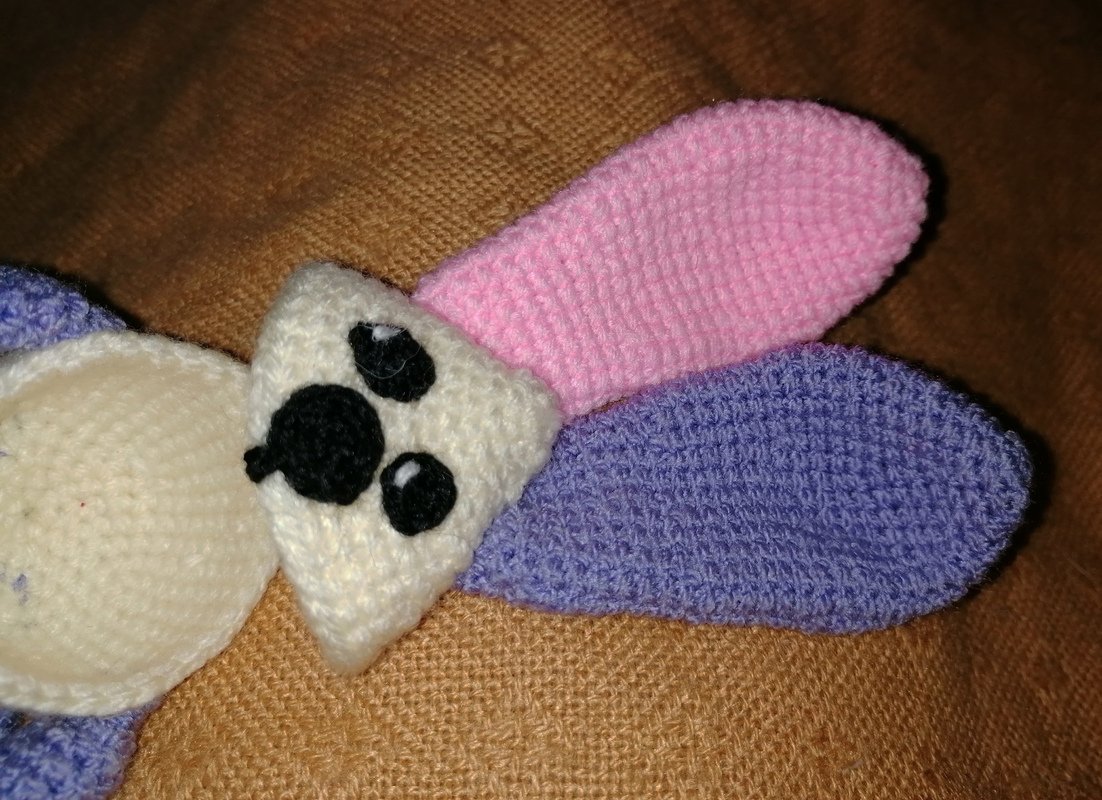 Wenn Sie Wolle für Nadelstärke 2 bis 3 verwenden, wird Ihr Hase ca. 16 cm hoch.