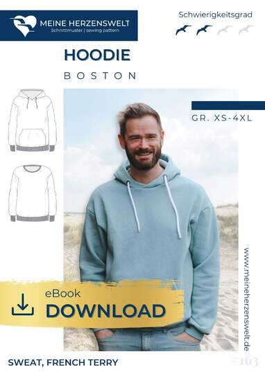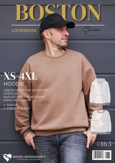 Entdecke den Hoodie Boston, ein beliebtes Schnittmuster für jeden modebewussten Mann. Dieses Schnittmuster bringt trendigen Streetwear-Stil mit Tragekomfort zusammen, perfekt für Herren, die auf einen coolen, entspannten Look setzen.