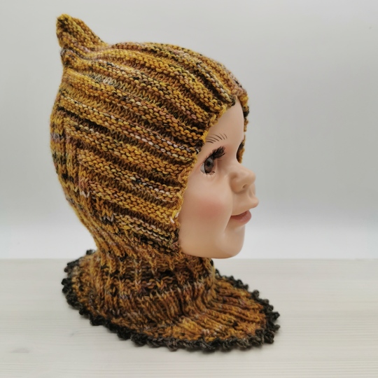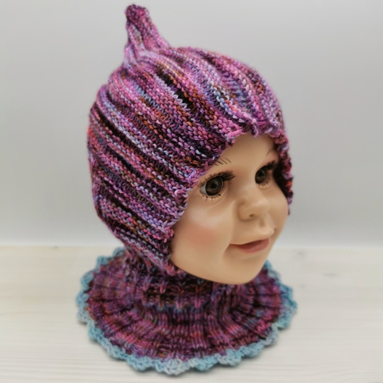Mütze Ella in drei Größen mit einfachem Schalkragen oder Verlängerung an Brust und Rücken.