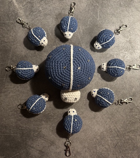 Der kleine Marienkäfer ist in etwa 3-4cm und der große ca. 12-15cm lang und ist im Handumdrehen von der Nadeö gehüpft