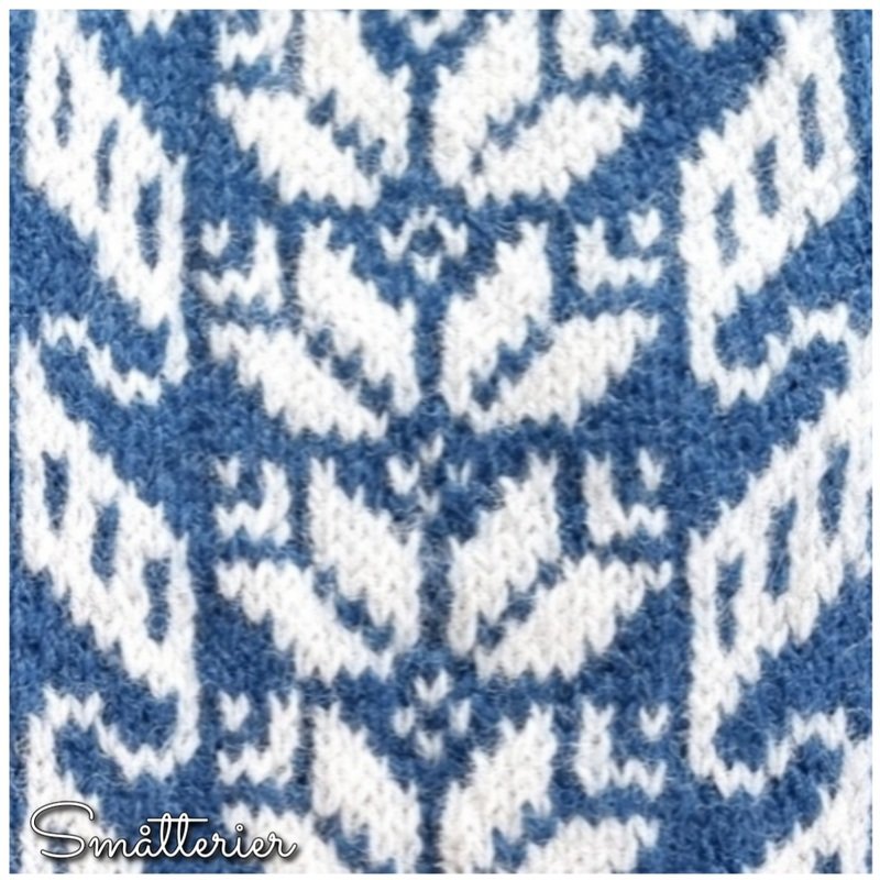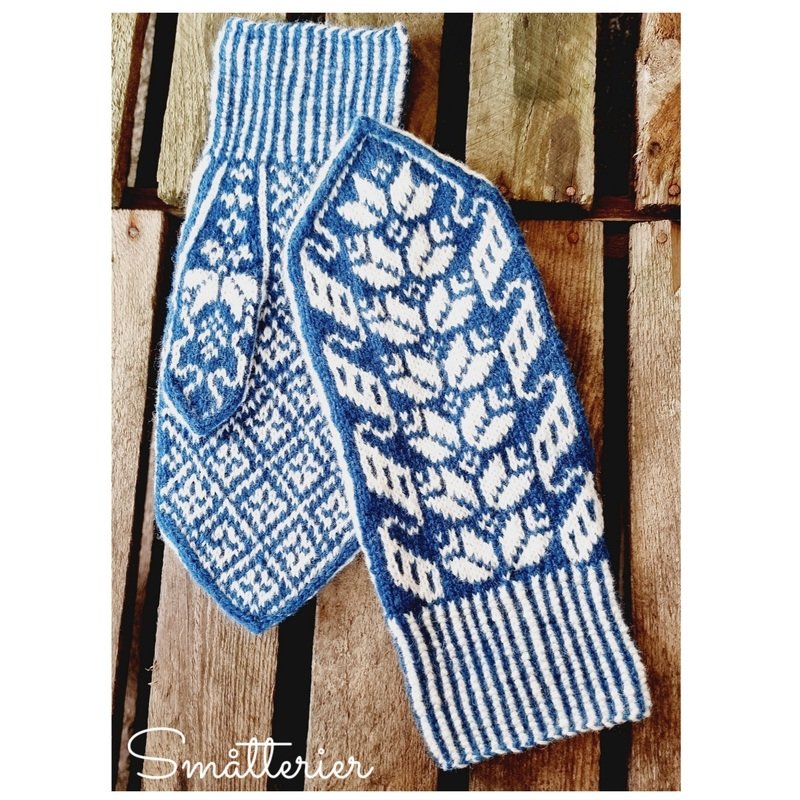 Diese Fäustlinge werden nach der norwegischen Selbu-Tradition gestrickt; zweisträngig in der Runde auf einem Nadelspiel. Der Daumen hat einen Zwickel und die Abnahmen erfolgen auf beiden Seiten der Hand bzw. des Daumens, sodass er flach und spitz anliegt.