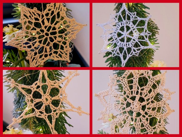 ist eine Häkelanleitung für 4 verschiedene Schneeflocken.