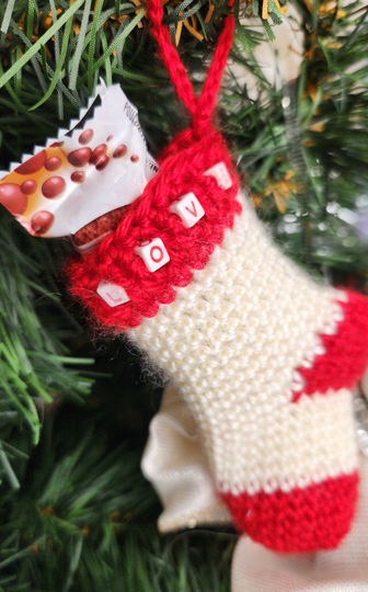 Wie man Perlen mit Buchstaben in Weihnachtsdekorationen häkelt