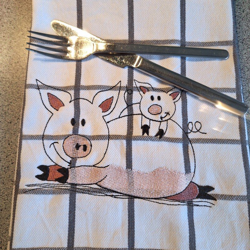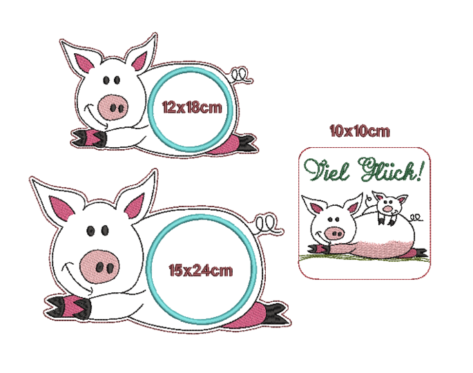Stickdatei für eine süße Schweinemama, die Glück bringt.
