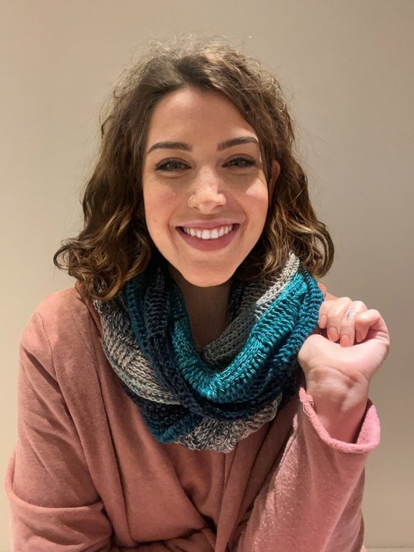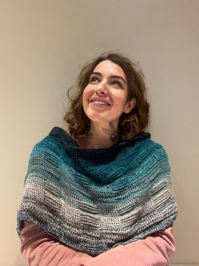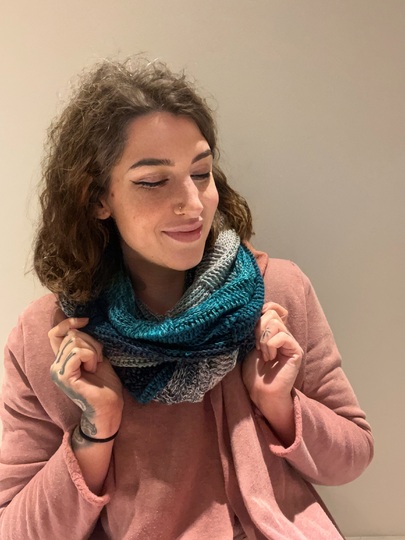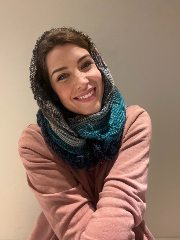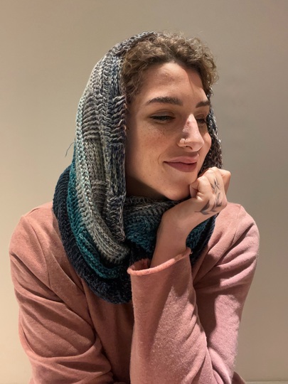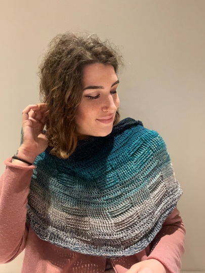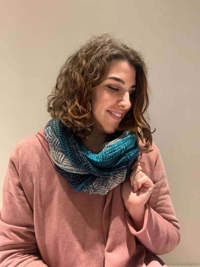 Der Loop DUNKLE KARIBIK kann beliebig groß gehäkelt werden.