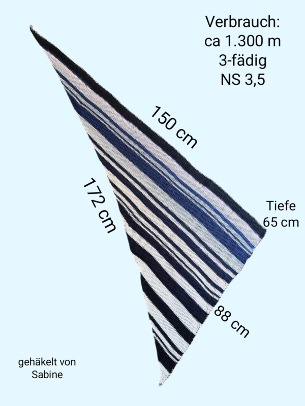 Individuell, da das Tuch beliebig groß gehäkelt werden kann.