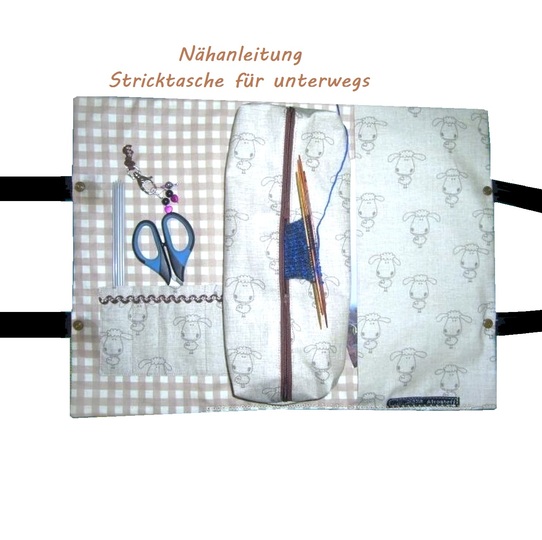 Kleine kompackte und gut durchdachte Projekttasche für kleine Strick- und Häkelprojekte, die man mitnehmen möchte, um im Wartezimmer, Zugfahrten usw. seine Handarbeitsprojekte fortzusetzten oder sich damit in der Wartezeit zu beschäftigen, wird jetzt praktisch in dieser Tasche verpackt. Nicht nur das Strickwerk, sondern auch Anleitungen, Maschenmarkierer, Schere, Stricknadeln usw.