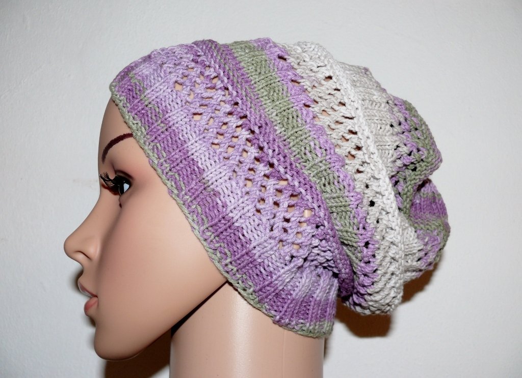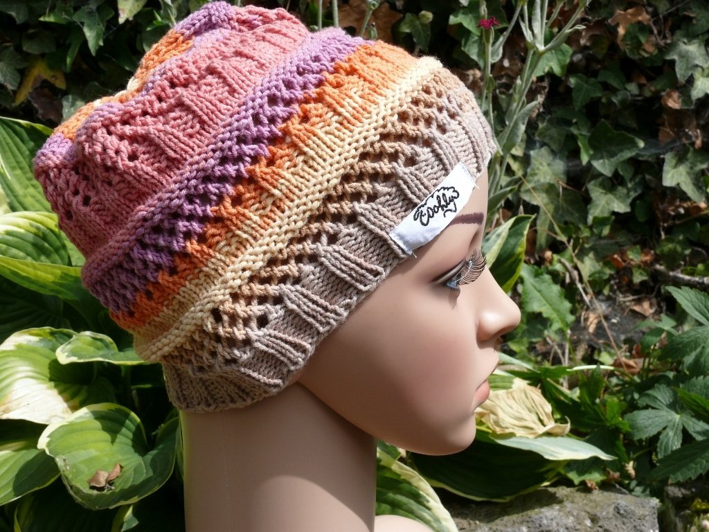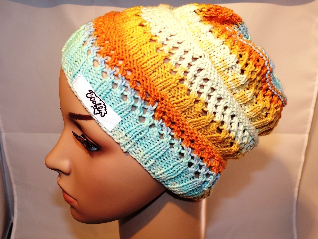 Schicke Sommerbeanie mit schönem Farbverlauf in der Größe 54-58. Durch das Lochmuster trägt sie sich auch an heißen Sommertagen luftig-leicht.