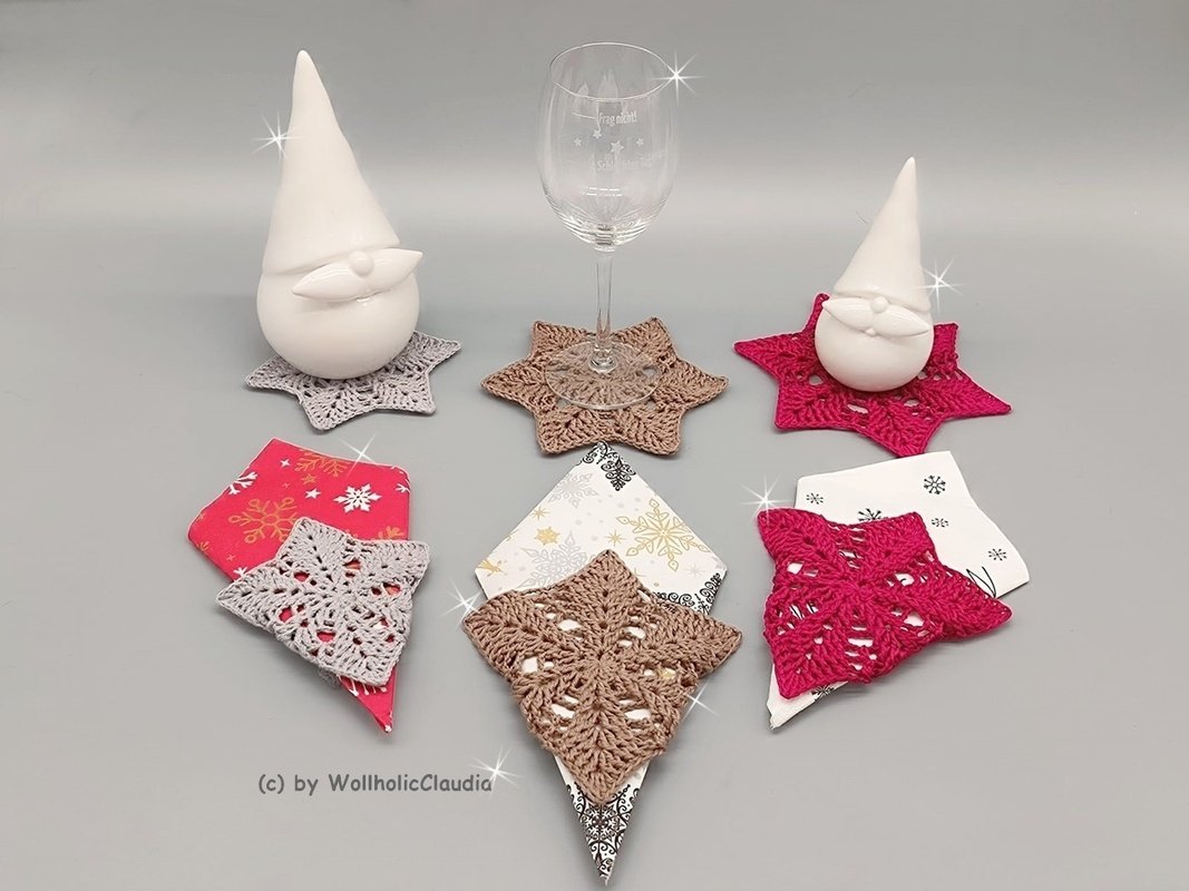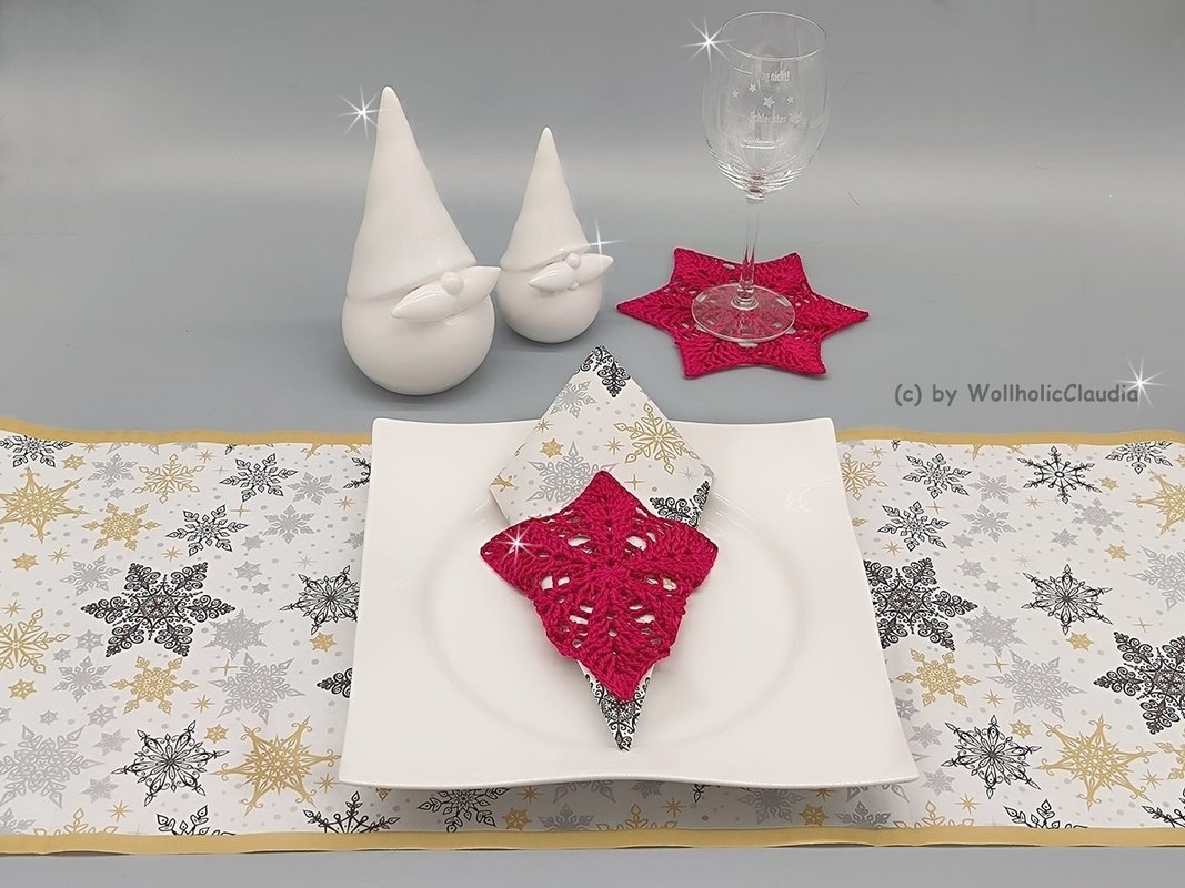 Hier bekommst du eine vielseitige Anleitung, mit der deiner Kreativität keine Grenzen gesetzt sind. Zum Beispiel als Tassenuntersetzer, als Bestecktasche, Serviettenhalter, Fenster- oder Baumschmuck oder sogar als Tischläufer, alles wird für weihnachtliche Stimmung sorgen.