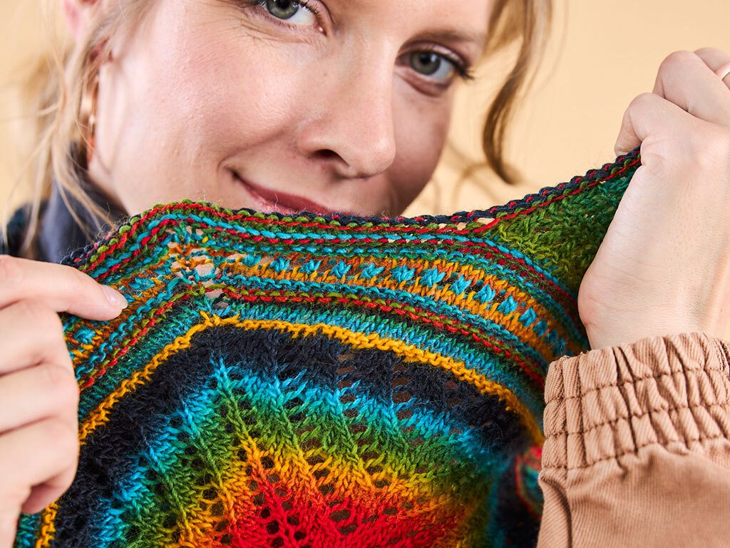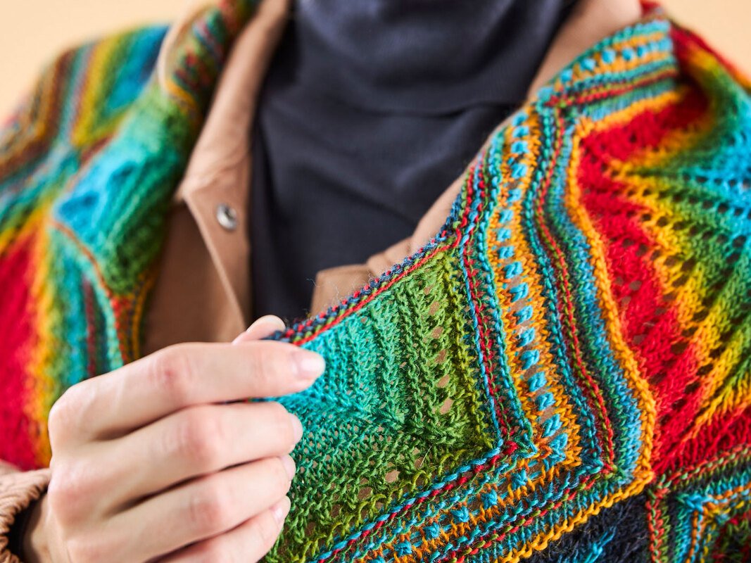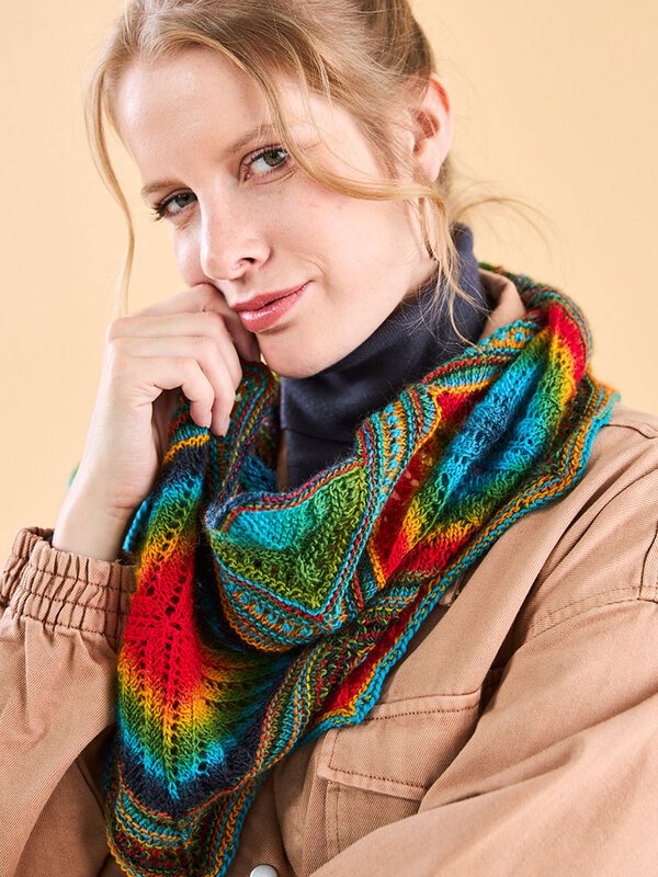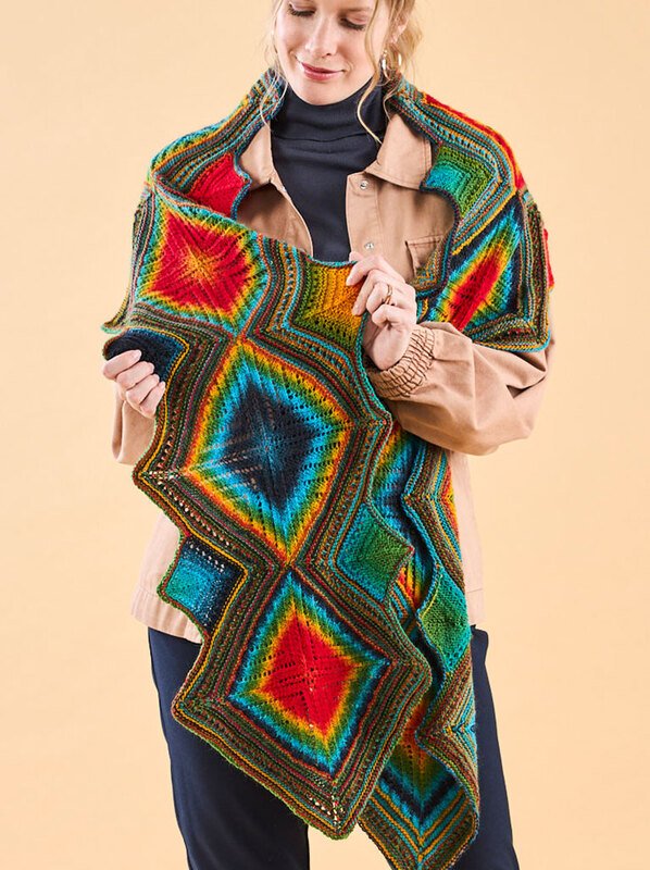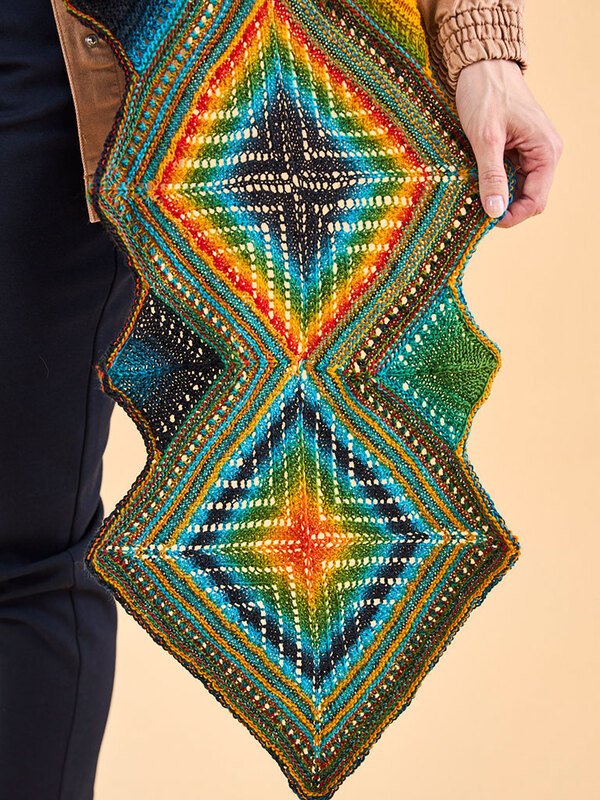 Hier ist es nun, ein gigantisches Stricktuch, das mit einem tollen Farbverlauf begeistert. Aber das Beste daran: Es ist mit Rauten in allen Variationen durchzogen, und keine ist wie die andere. Jedes Muster ist einzigartig, nie gleich, was dieses Tuch zu einem echten Hingucker macht. Mit verschiedenen Mustern kombiniert, wird es dein Lieblingsaccessoire für jeden Anlass. Lass dich von seiner Einzigartigkeit verzaubern