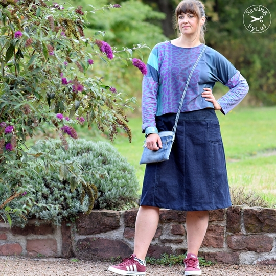 Materialvorschlag: Baumwoll- oder Viscosejersey, leichte fließende Webware wie Viscose. Auch leichte Webware wie Jeans, Babycord, Kunstleder