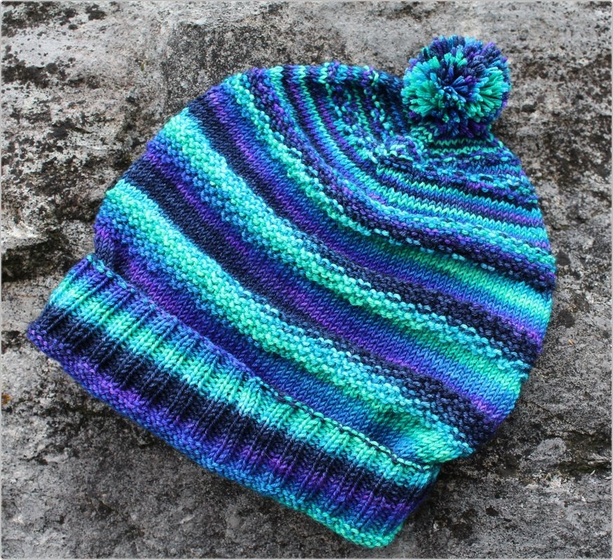 Dieser Farbverlauf ist einfach perfekt für coole Kindermützen. Ein echter Hingucker sind diese Polarlichter. Das Garn ist weich und angenehm zu tragen. Bei diesem Farbverlauf benötigt man auch kein kompliziertes Muster, denn dieser spricht für sich selbst. Also habe ich sie gleich in zwei Größen gestrickt.