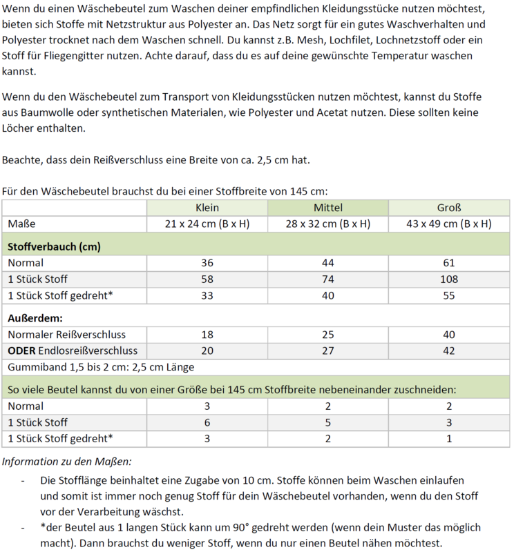 Das Schnitt,uster ist anfängerfreundlich. Falls du wenig Näherfarung hast, solltest du den Beutel zuerst auf Webware nähen. Netzstoffe sind etwas schwieriger, da sie sich etwas ausdehnen.