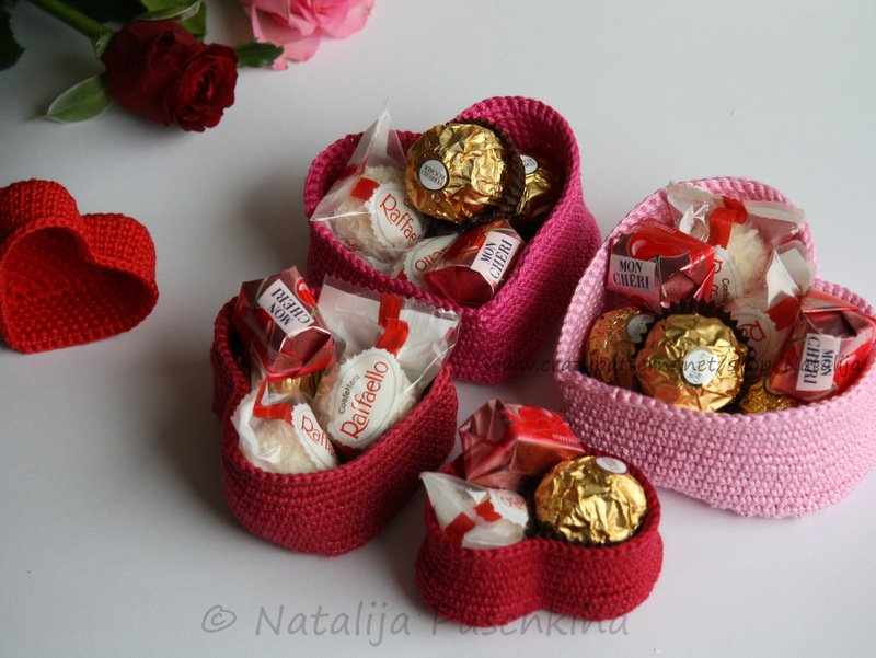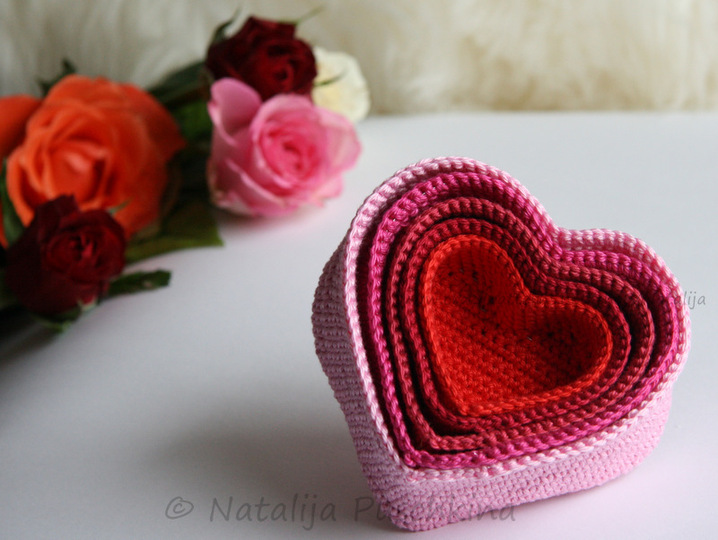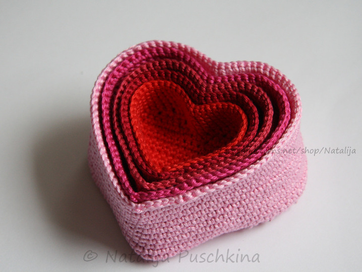 Verkauf der von Dir hergestellten Körbchen ist möglich: Du darfst die Artikel, die Du mithilfe meiner Anleitung zum Häkeln von Herzkörbchen gefertigt hast, in beliebiger Stückzahl gewerblich verkaufen. Bitte den Hinweis: „Angefertigt nach dem E-Book von Natalija Puschkina https://www.crazypatterns.net/de/store/Natalija“ dazusetzen.