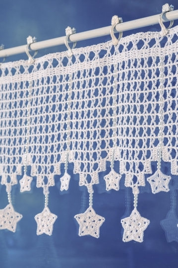 Die Gardine mit luftigem Gittermuster überzeugt mit vielen eingearbeiteten weißen