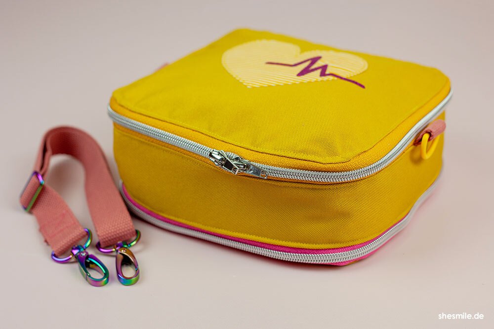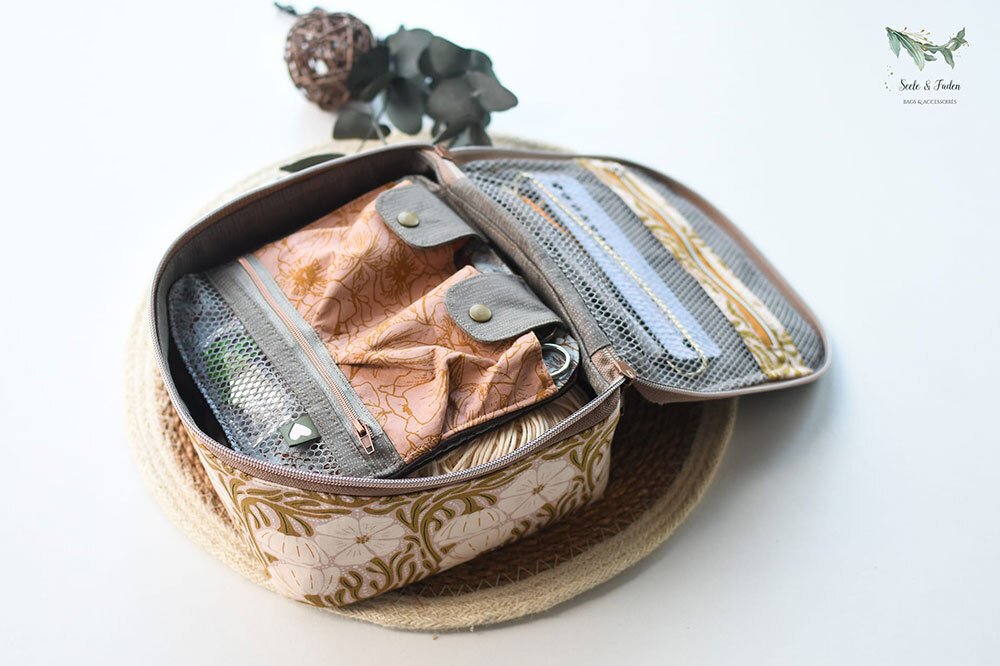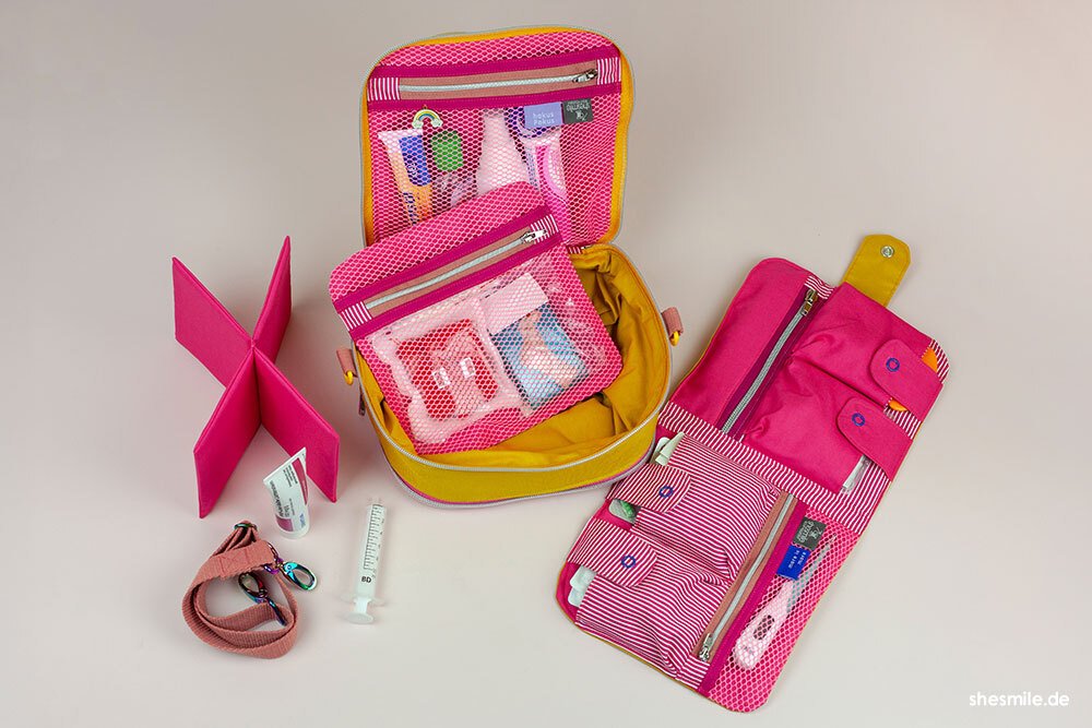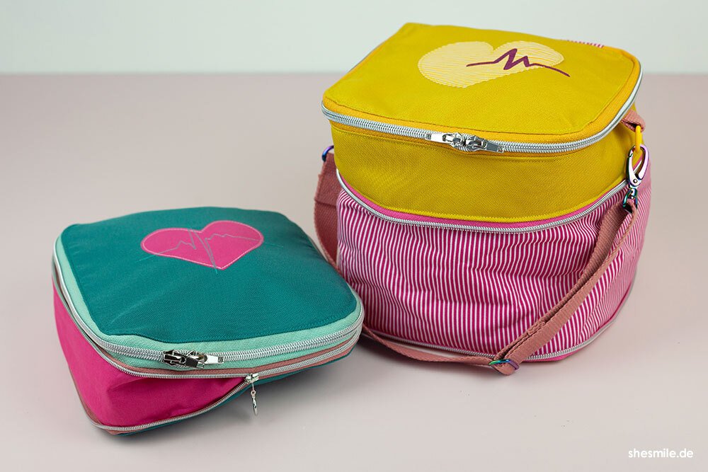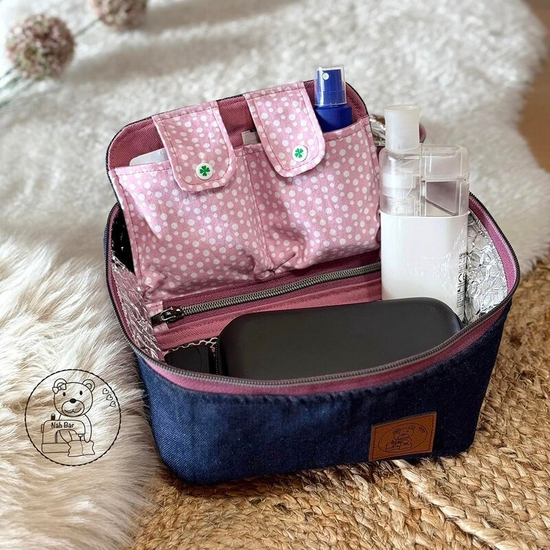 Hilfreiche AddOns: Schritt für Schritt zeige ich dir, wie du eine herausnehmbare Netztasche oder einen Medikamenten-Organizer für noch mehr Ordnung und Stauraum nähen kannst. Nützlich ist auch das gepolsterte Trennkreuz (für die 18 cm Höhe) oder der flexible Tragegurt.