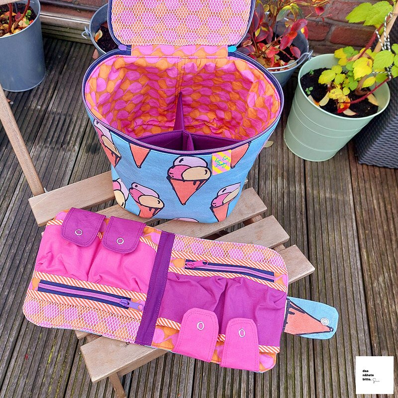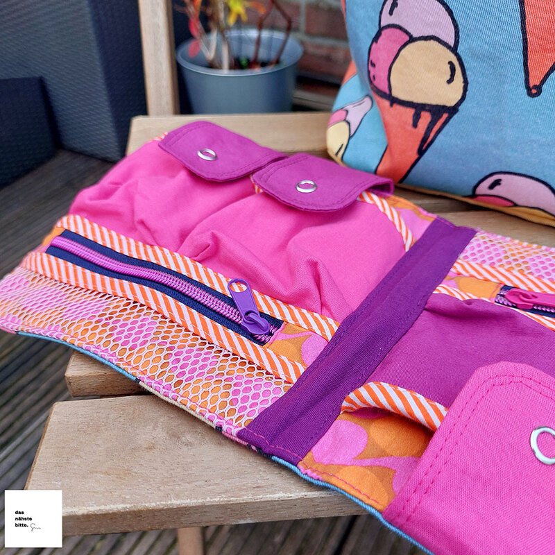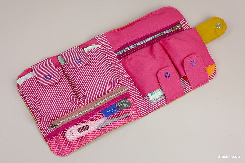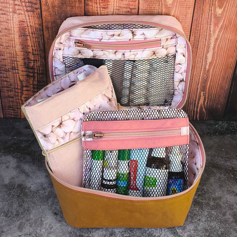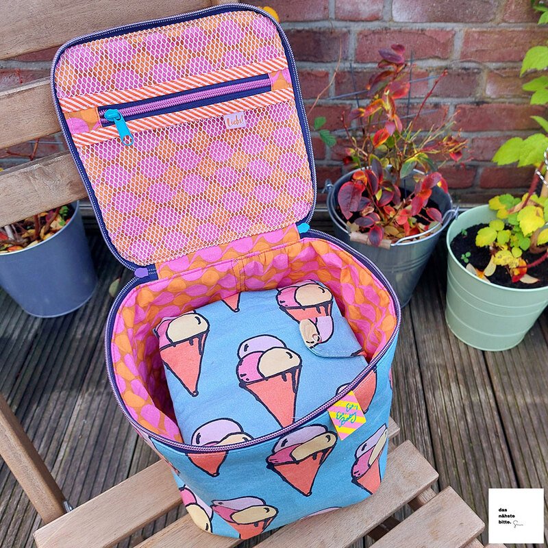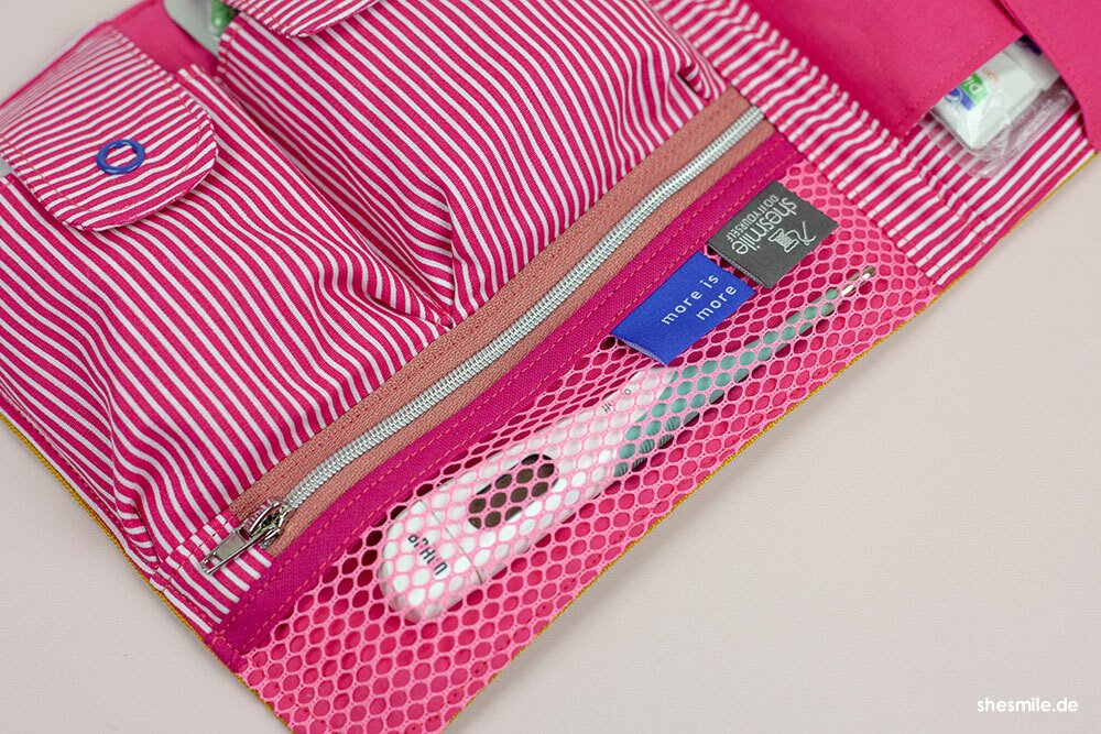 Hilfreiche AddOns: Schritt für Schritt zeige ich dir, wie du eine herausnehmbare Netztasche oder einen Medikamenten-Organizer für noch mehr Ordnung und Stauraum nähen kannst. Nützlich ist auch das gepolsterte Trennkreuz (für die 18 cm Höhe) oder der flexible Tragegurt.