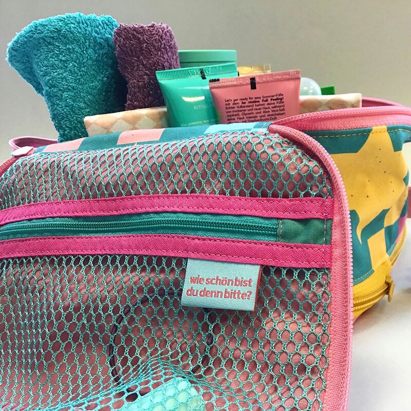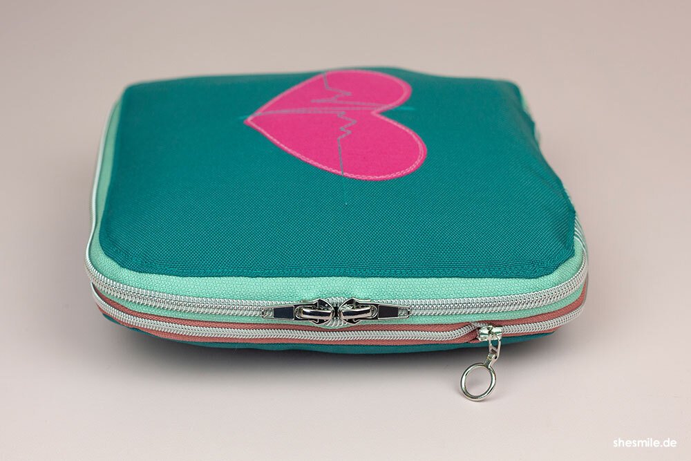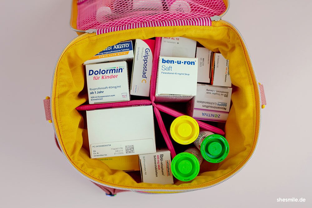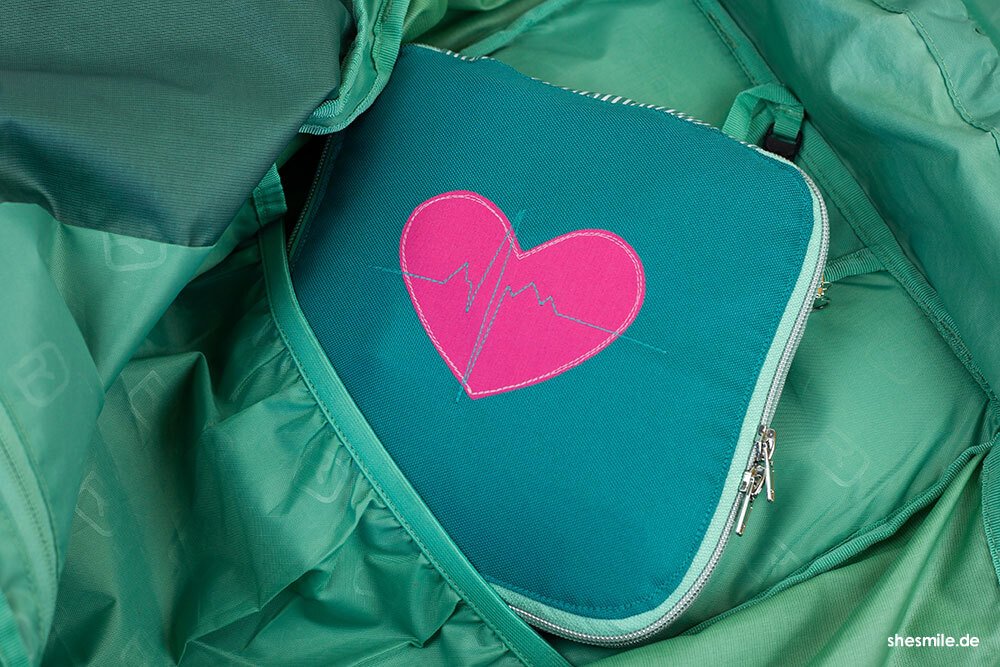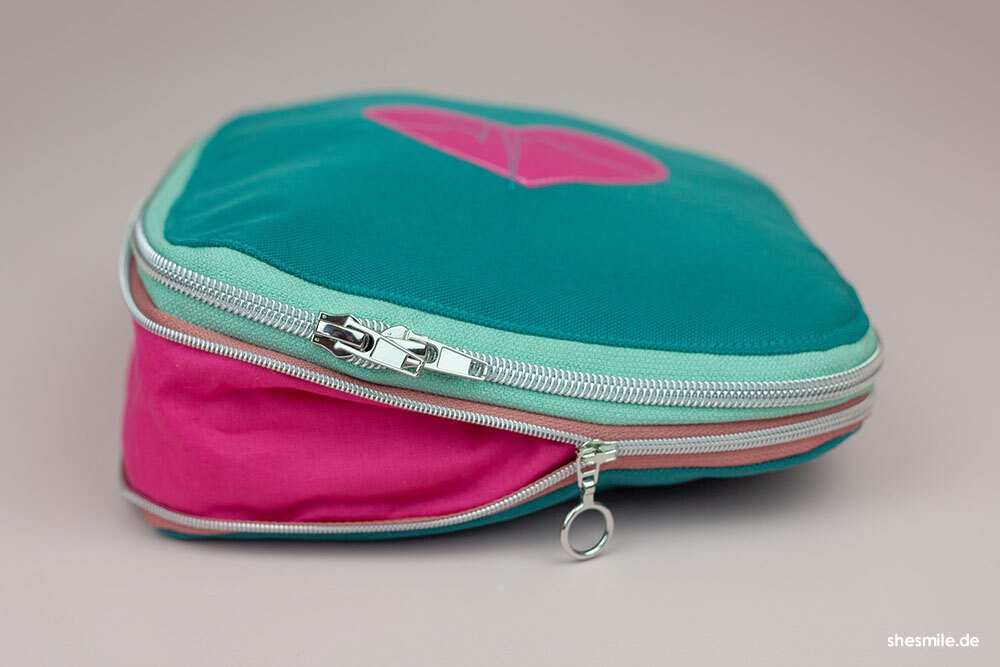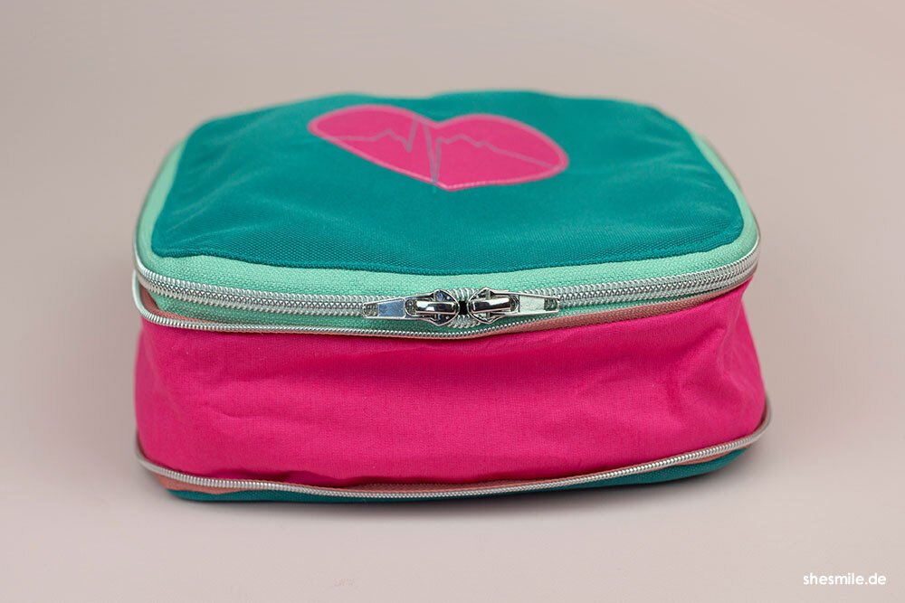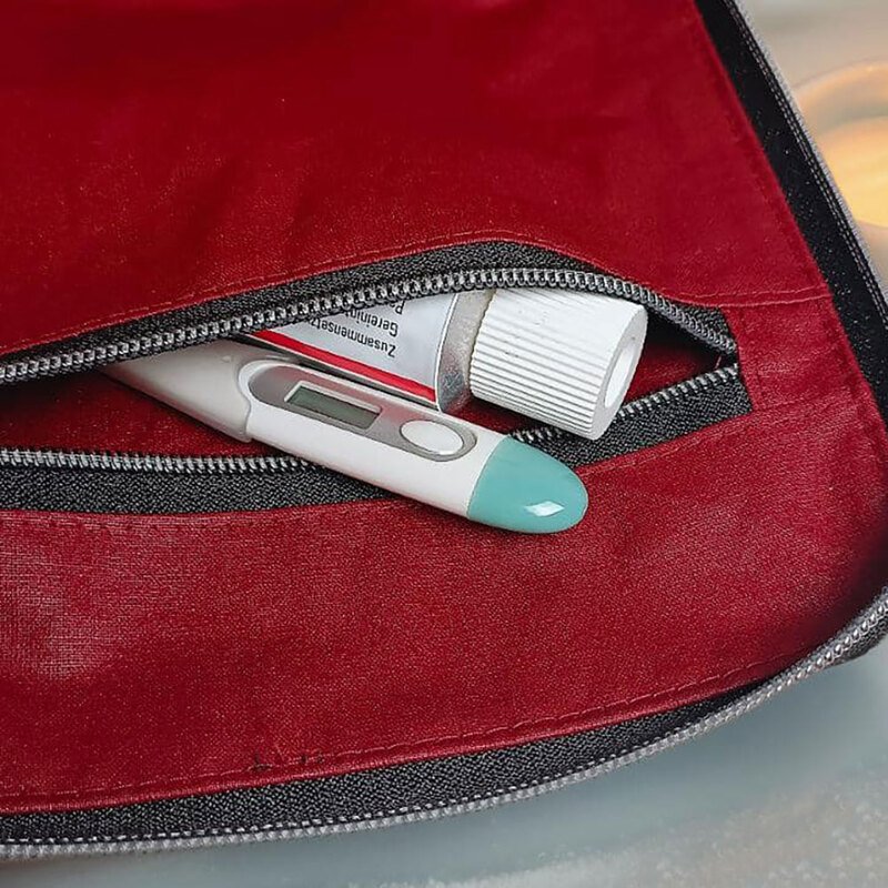 Der ZipKram-Reißverschluss: Mit einem rundum verlaufenden Reißverschluss lässt sich die Tasche flexibel in der Höhe anpassen. Kompakt und handlich, wenn du sie unterwegs dabei hast, oder geräumig, wenn du den Reißverschluss öffnest. Dann passen auch stehende Verpackungen (wie z.B. Antibiotika- oder der Hustensaft) in die Tasche. Auch ist der Reißverschluss super hilfreich, wenn du auf das Packmaß der Tasche achten möchtest. Dies ist besonders dann nützlich, wenn du auf Reisen bist und im Rucksack oder Trolley nicht viel Platz hast bzw. deinen Stauraum möglichst sinnvoll nutzen möchtest.