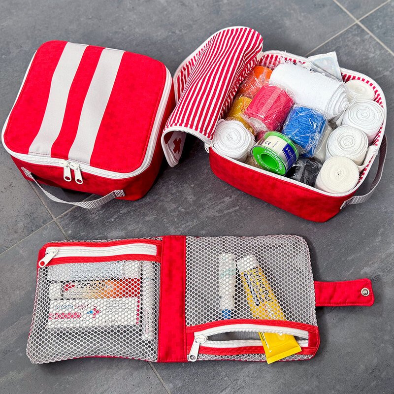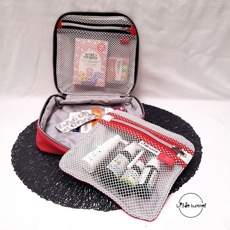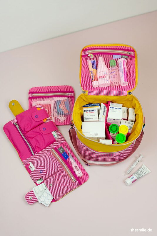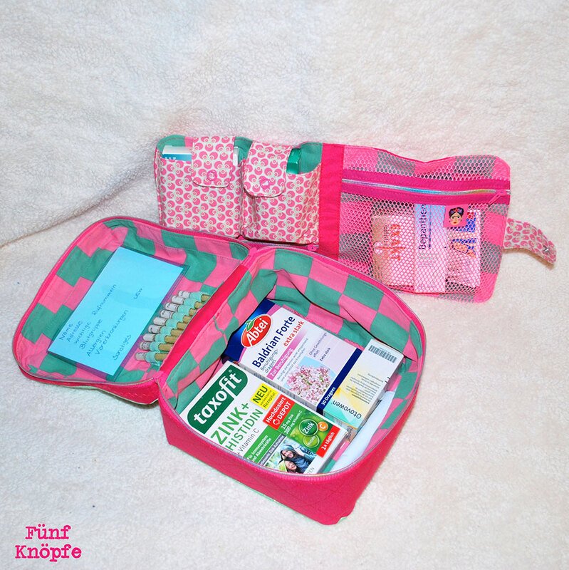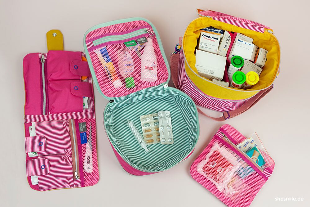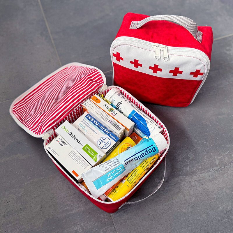Nähanleitung und Schnittmuster gestaltet als PDF-E-Book für eine gut sortierte Erste-Hilfe-Tasche für unterwegs und zu Hause.