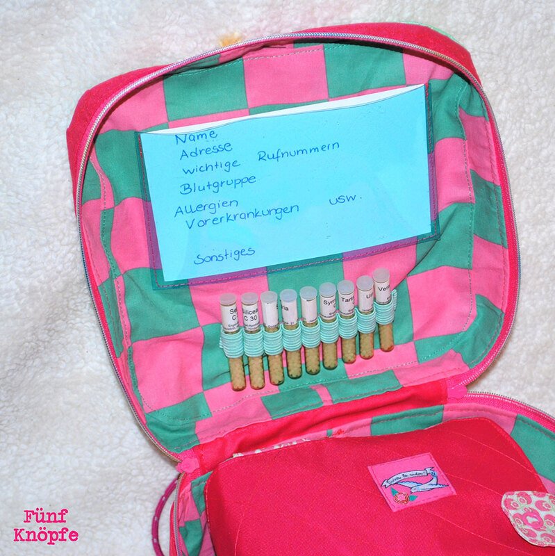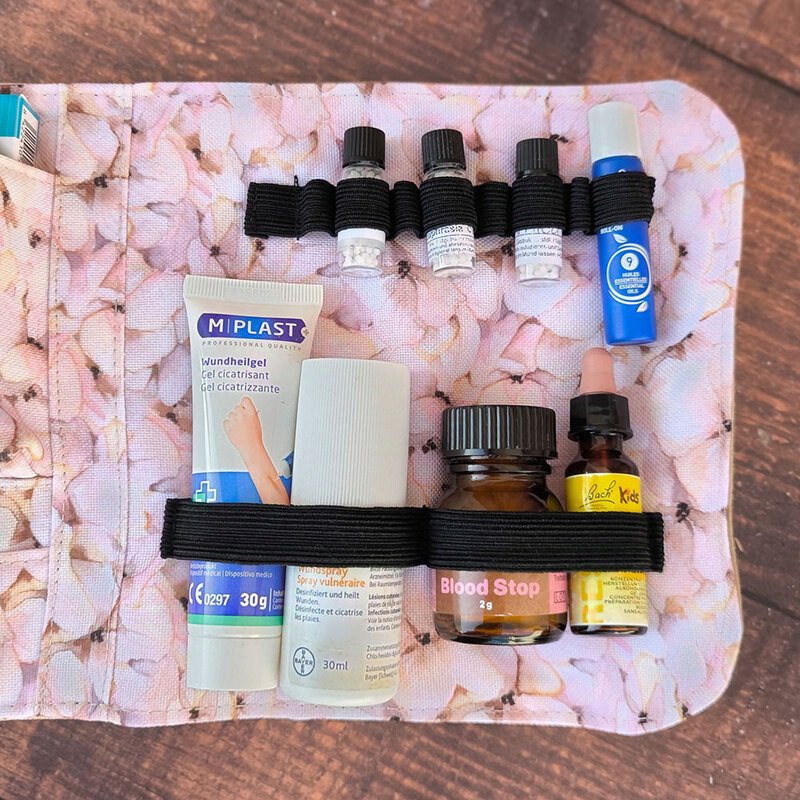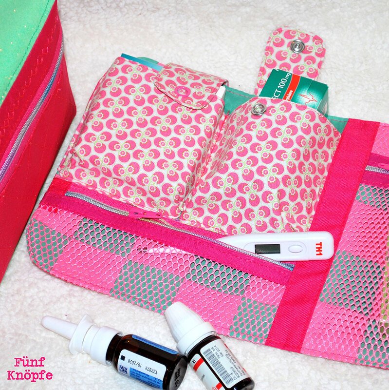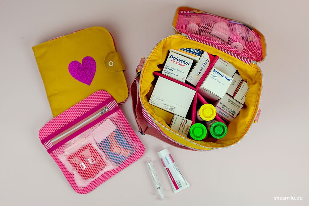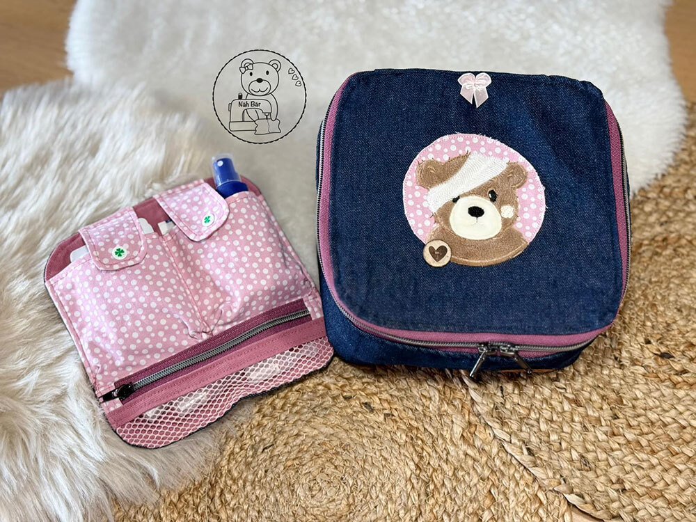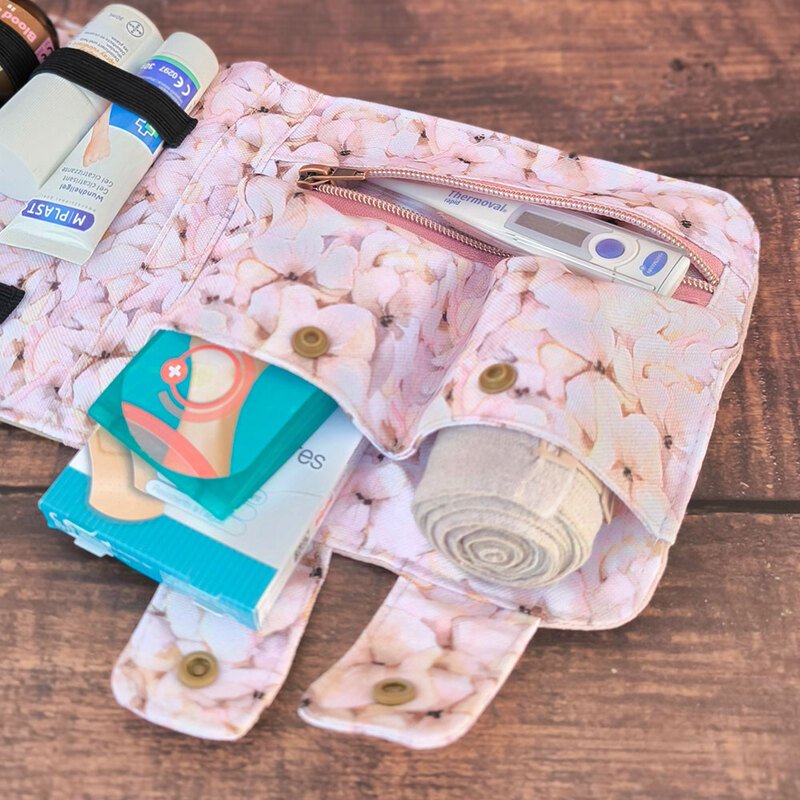 Nähanleitung und Schnittmuster gestaltet als PDF-E-Book für eine gut sortierte Erste-Hilfe-Tasche für unterwegs und zu Hause.