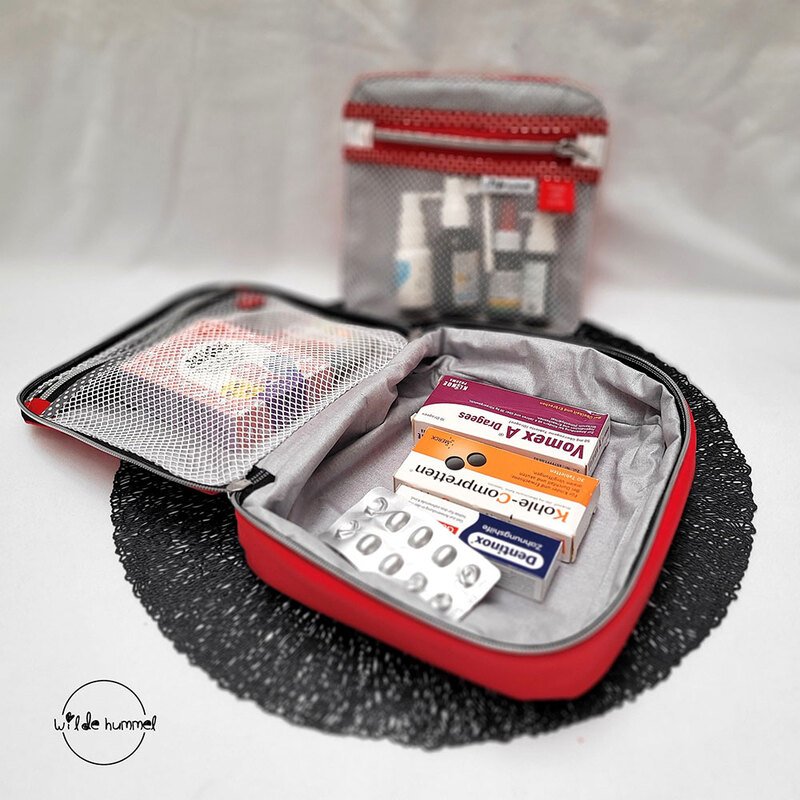 Die Medikamententasche “ZipKram” ist ein Baukasten-System aus Erste-Hilfe-Tasche, Reiseapotheke und Notfall-Kit für unterwegs und zu Hause.