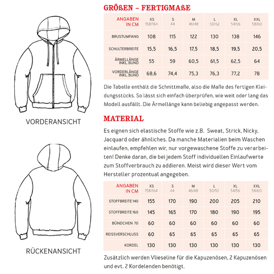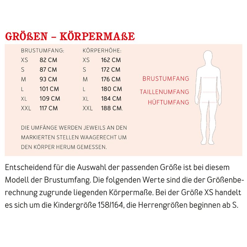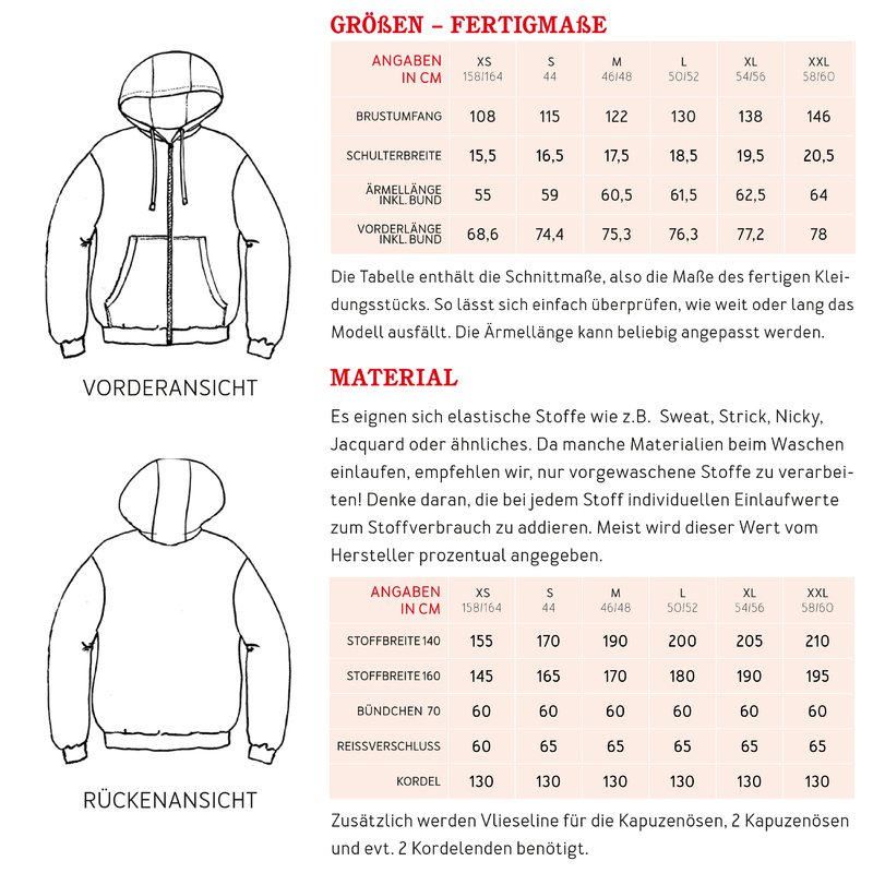 6 Doppelgrößen XS (158/164) bis XXL (58/60)