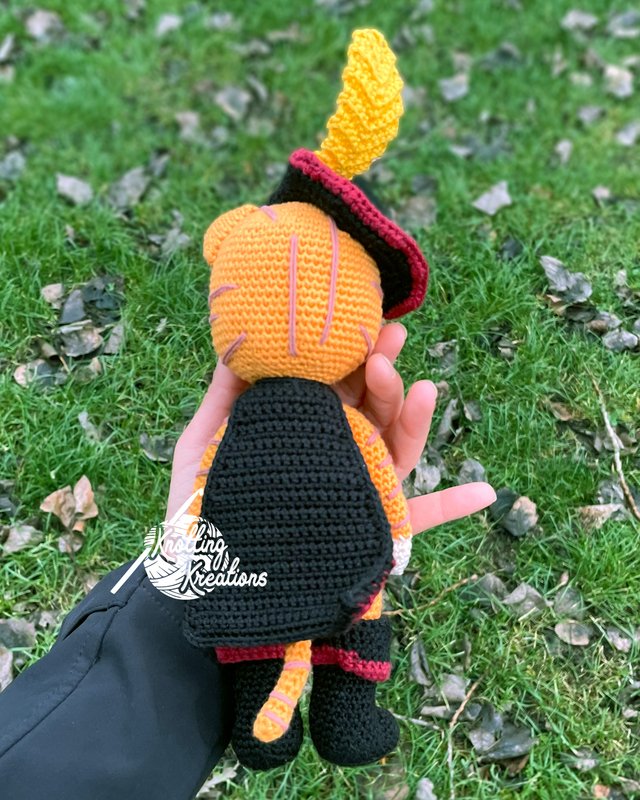 Diese Katze ist nicht nur eine wunderschöne und ausdrucksstarke Kreation, sondern auch ein wahres Meisterwerk, das du mit deinen eigenen Händen erschaffen kannst. Sie kommt mit charmanten Stiefeln, einem eleganten Umhang und einem Hut, der mit einer schicken Feder verziert ist – genau wie du es dir von einer außergewöhnlichen Katze vorstellen würdest!