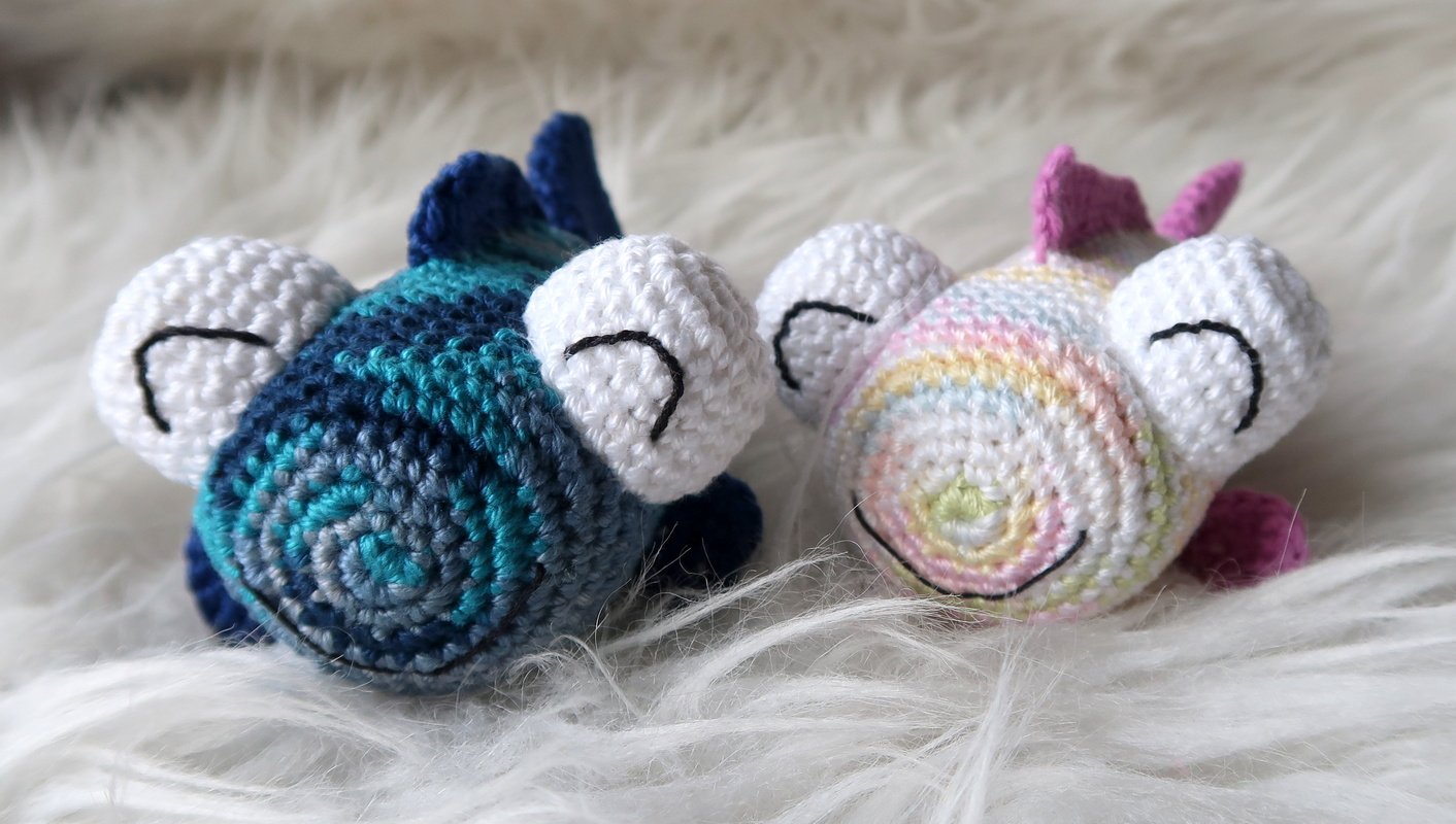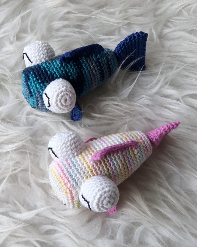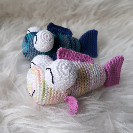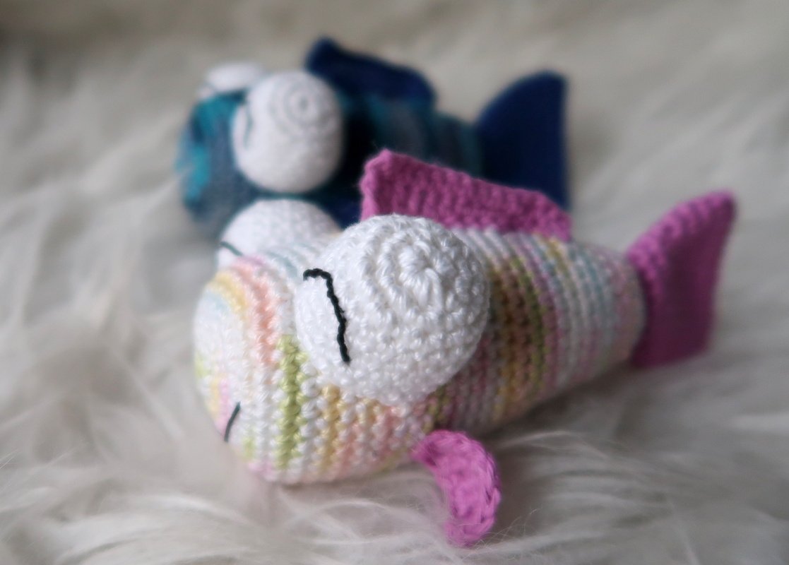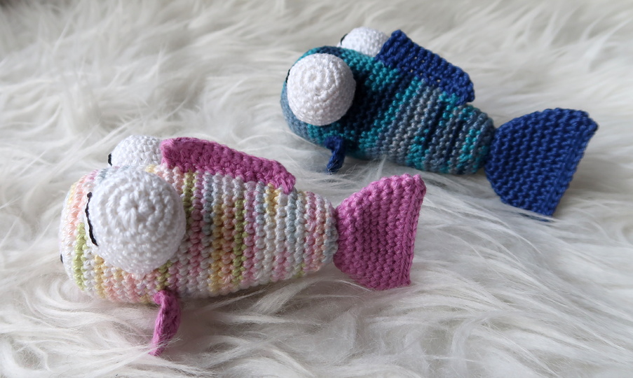Wenn du mit Baumwolle (125m LL auf 50g) häkelst, wird der Fisch ca. 12cm lang.