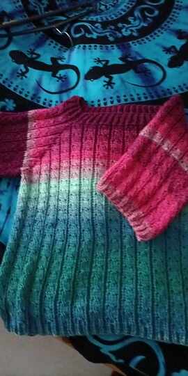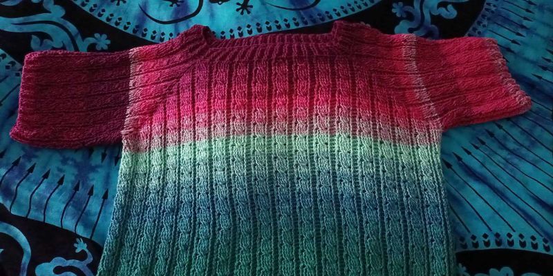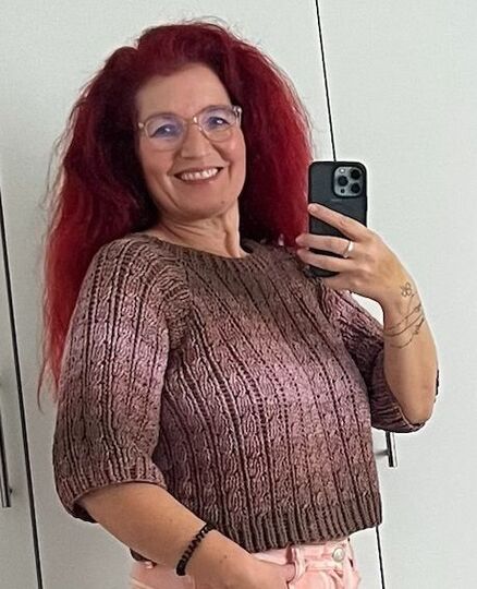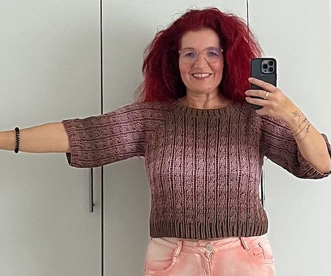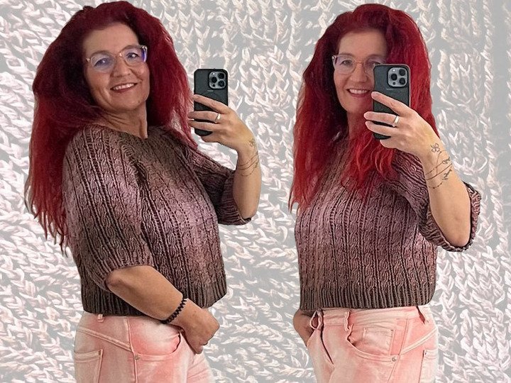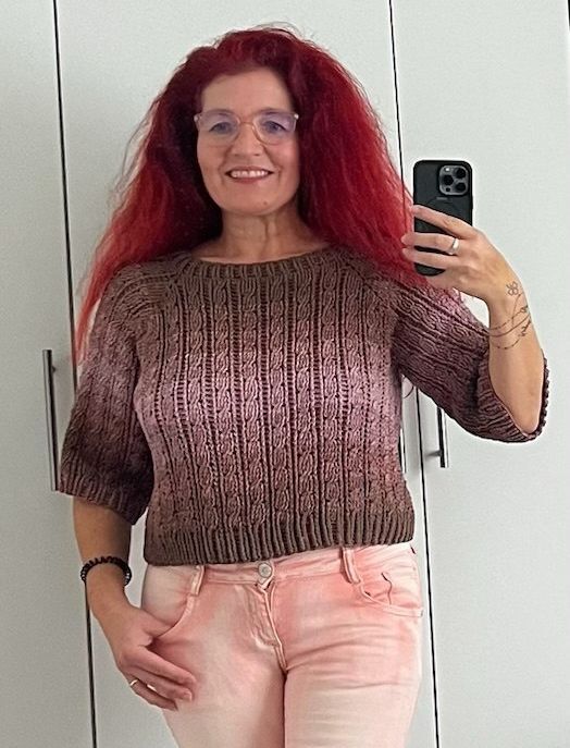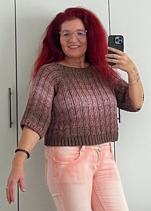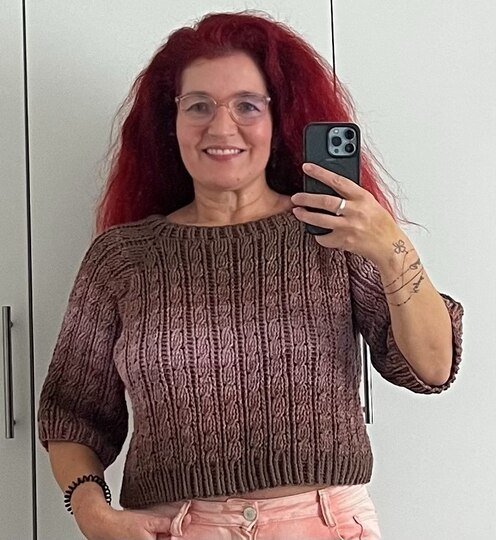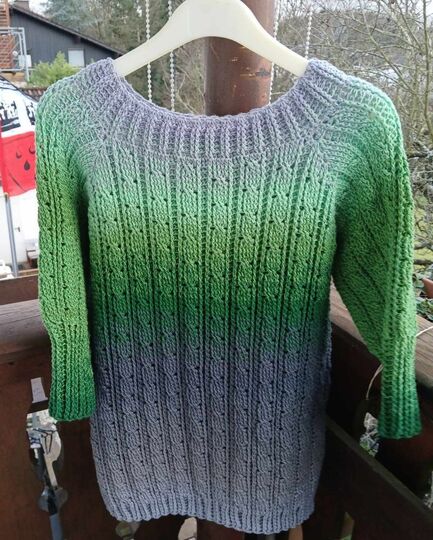 Coleta ist ein klassischer RVO Pullover - Raglan von oben - d.h. er wird von oben nach unten in Runden gehäkelt.