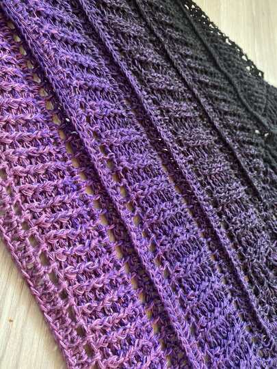 Die Anleitung enthält wie gewohnt die schriftliche Anleitung für das klassische Dreieckstuch, eine saubere Häkelschrift mit Zeichenerklärung und eine Tabelle für die Selbstkontrolle.