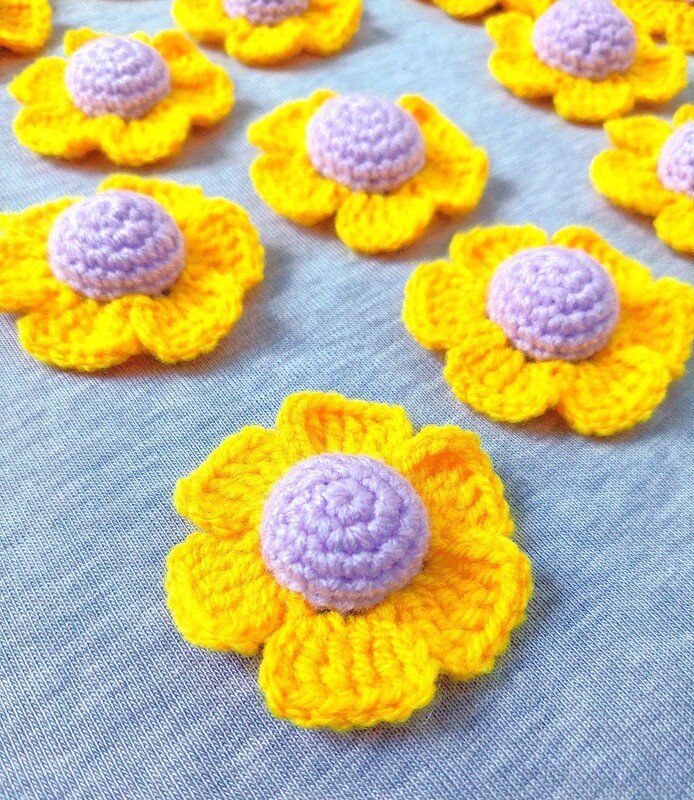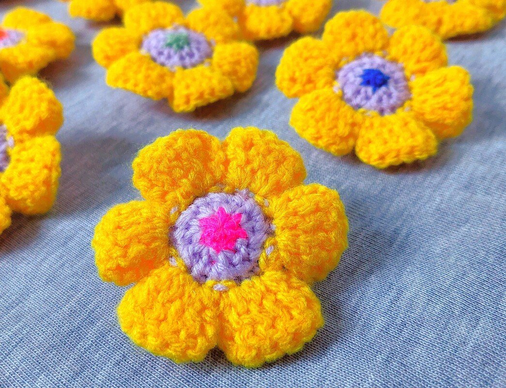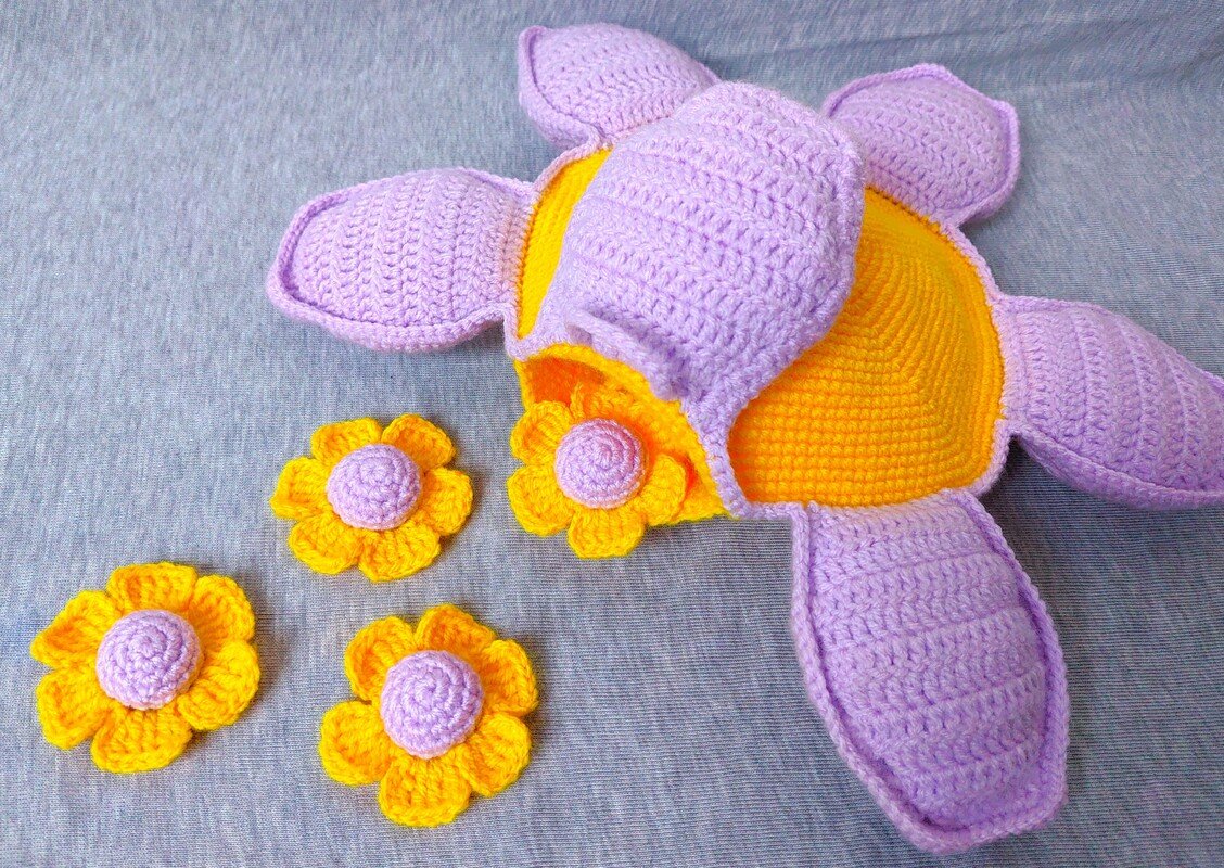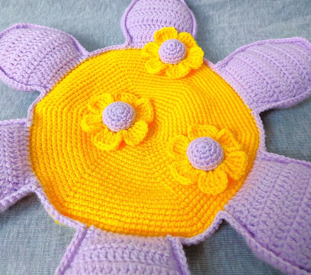 Ein weiterer positiver Punkt ist, dass man, außer Fäden vernähen, nichts nähen muss, da die Blütenblätter direkt angehäkelt werden.