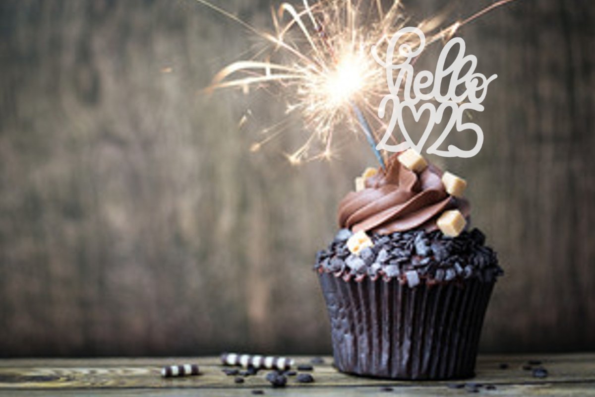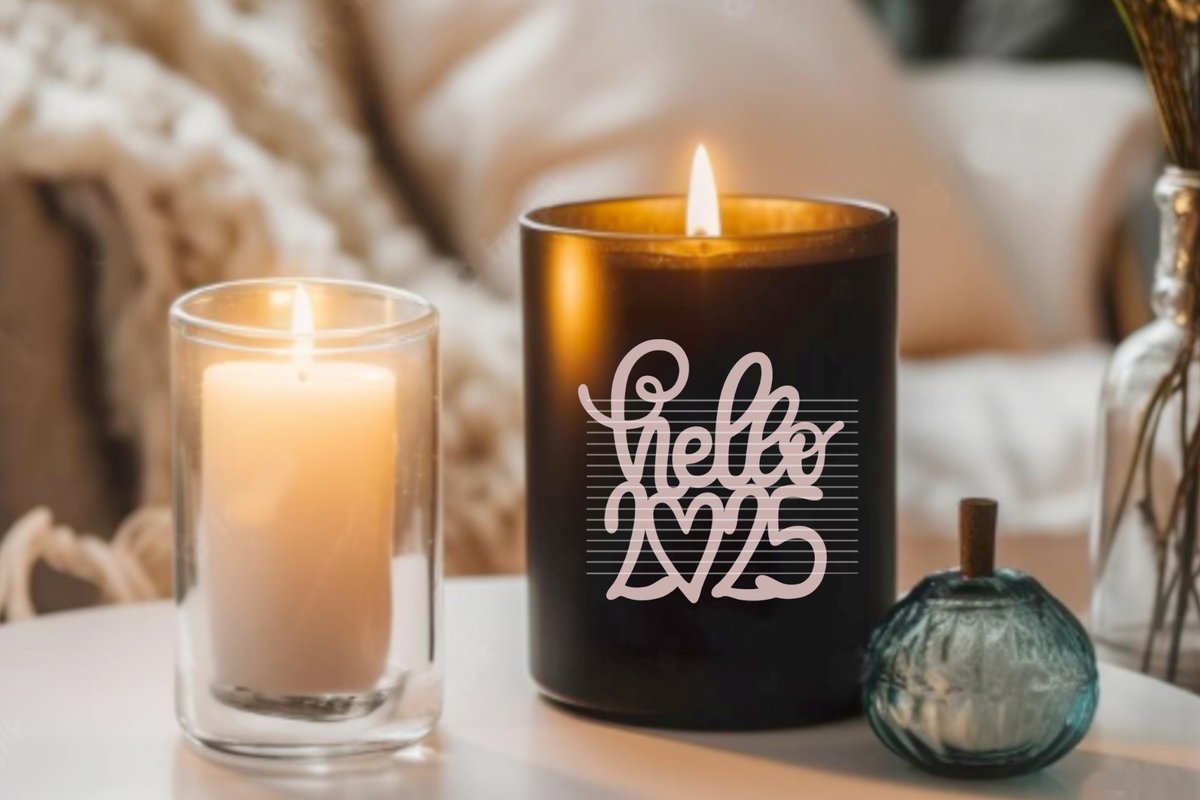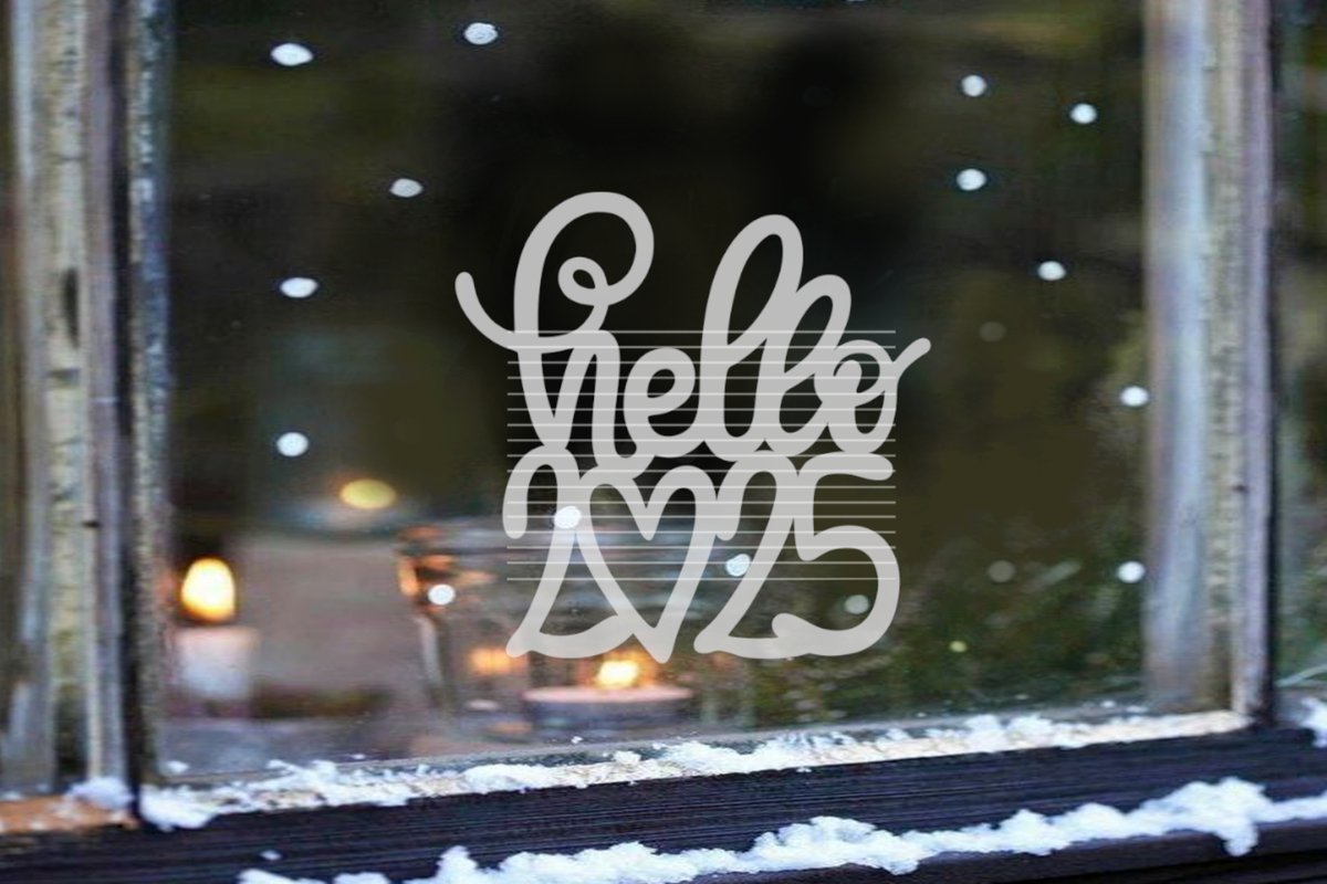Hello 2025 für Dekorationen aus Papier, Folien und anderen Materialien.