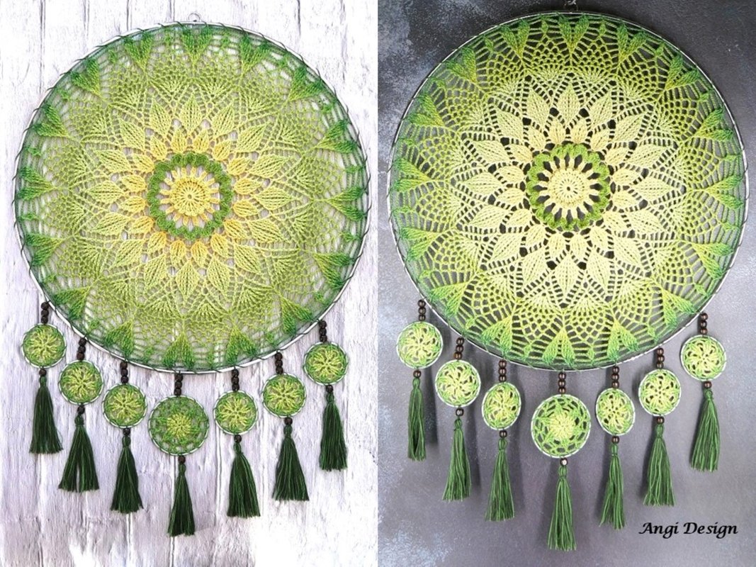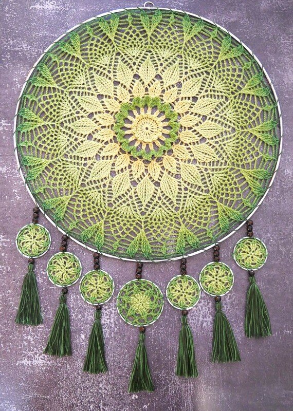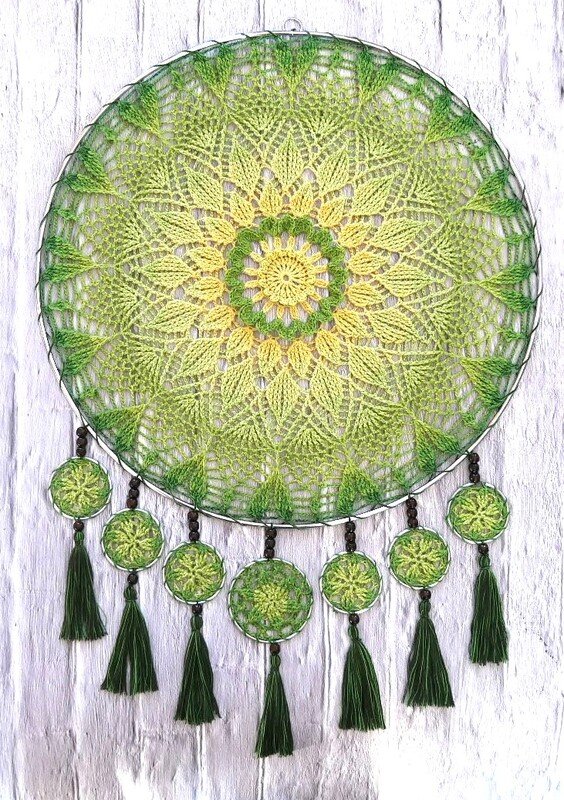 Dieses wunderschöne Mandala "Blätterreigen" wird auf einen großen Ring gespannt.