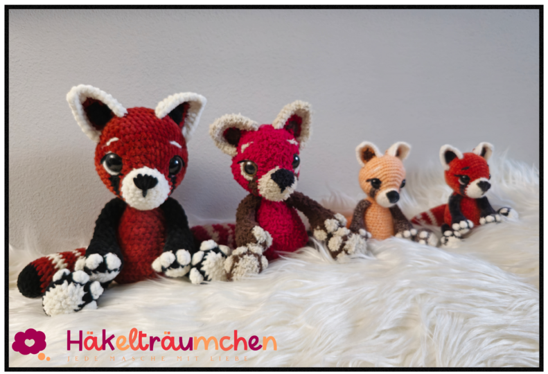Der Rote Panda Linus wird (abhängig vom Material) unterschiedlich groß: