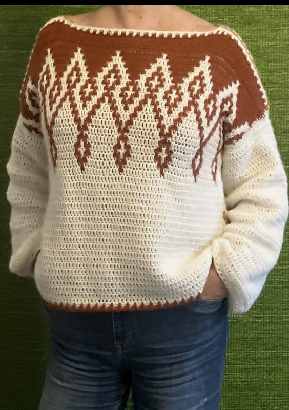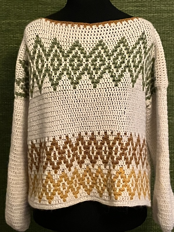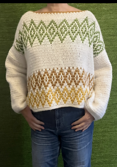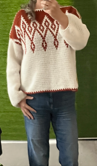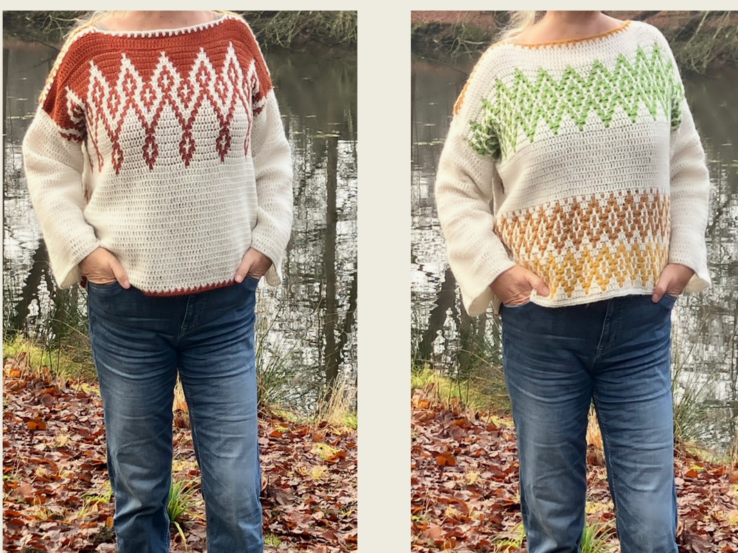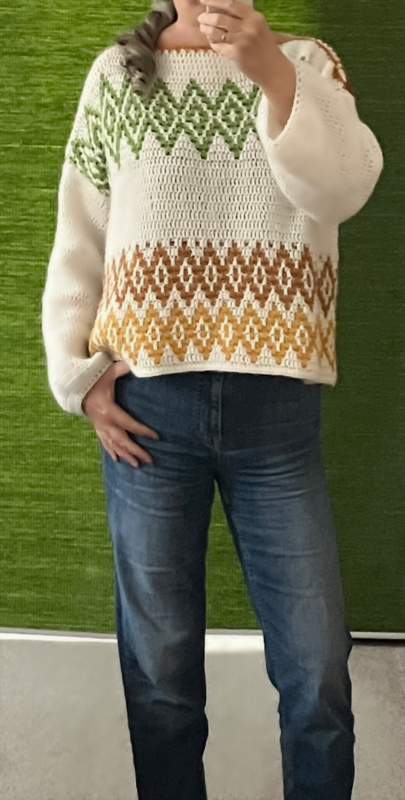 Der Schnitt des Pullovers ist besonders lässig / üppig, sodass er einer von meiner Sammlung an "Bauchwegschummlern" ist. Viel Spaß beim häkeln.
