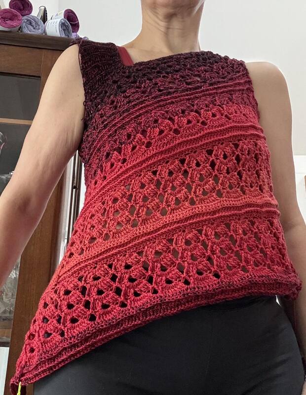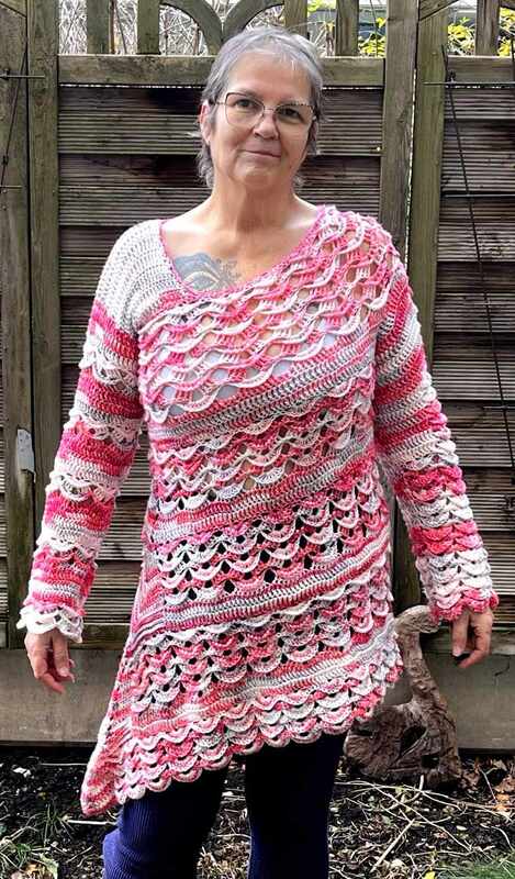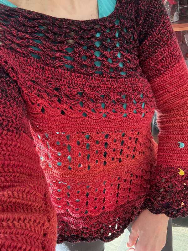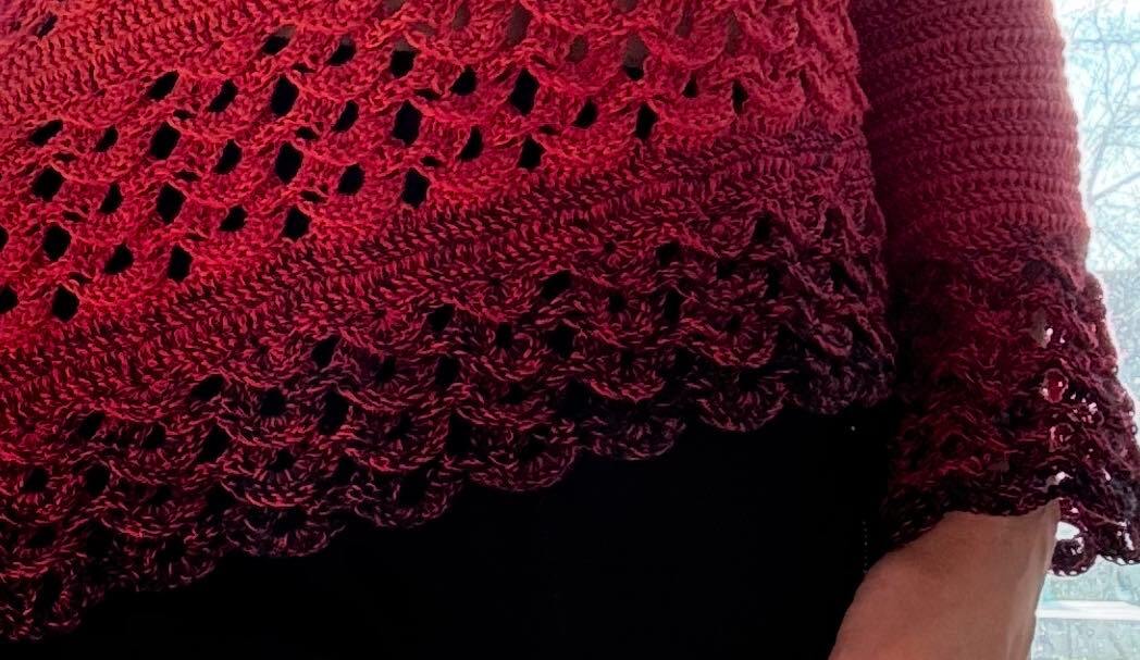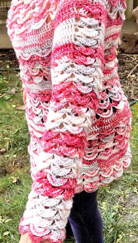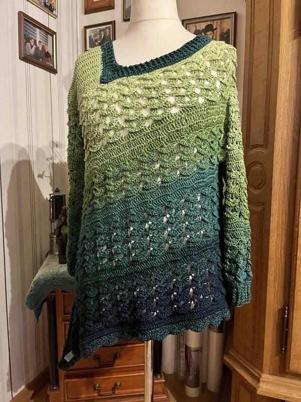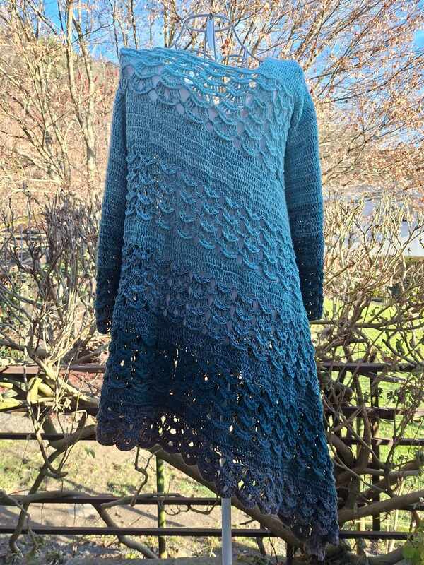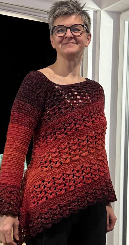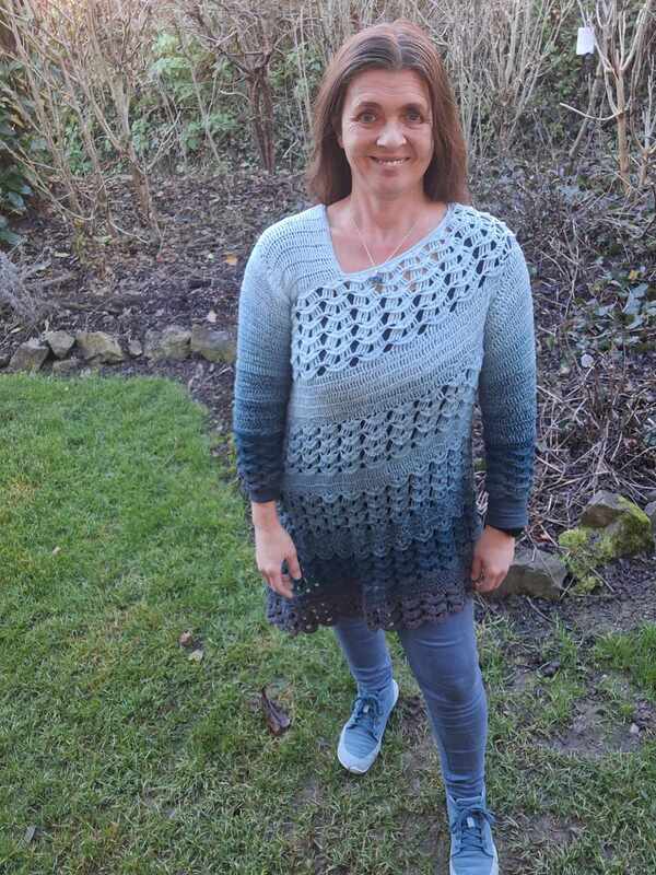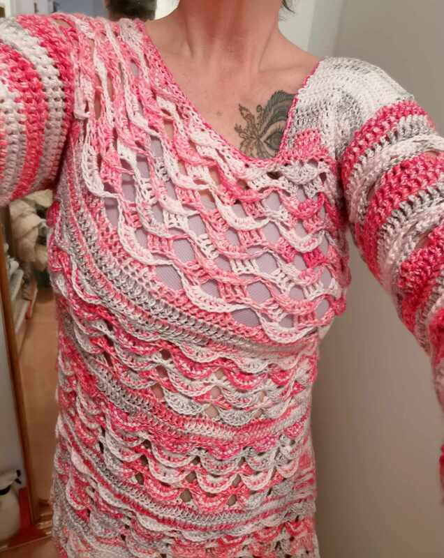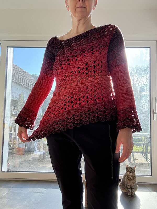 Er wird in einem Stück gearbeitet, die Ärmel werden extra angehäkelt.