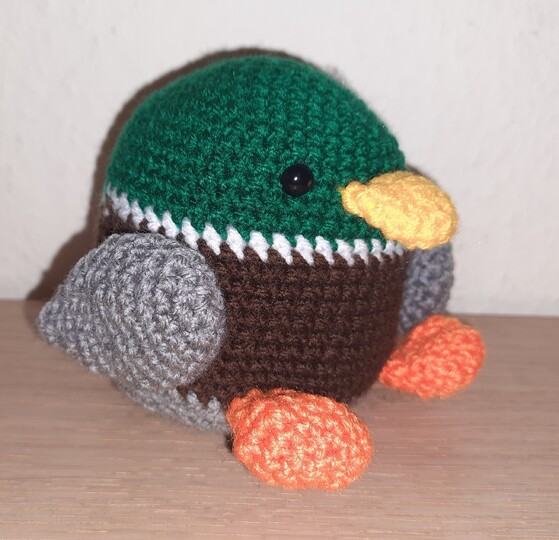 Hier stelle ich eine Anleitung für eine Ente zur Verfügung. Man kann sie als Steh-auf-Männlein machen oder als normales Kuscheltier