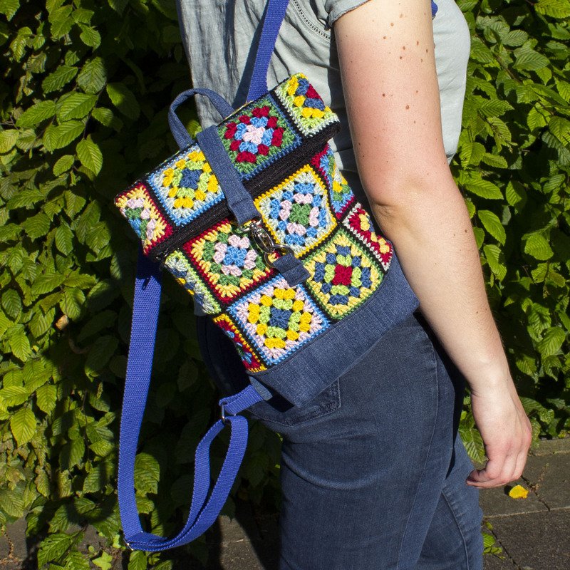 Mit der Anleitung kannst du einen Rucksack aus Granny Squares häkeln und nähen. :) Die Grannys werden gehäkelt und anschließend wird der Rucksack mit einem genähten Teil fertiggestellt.