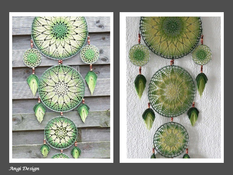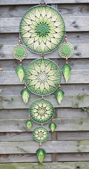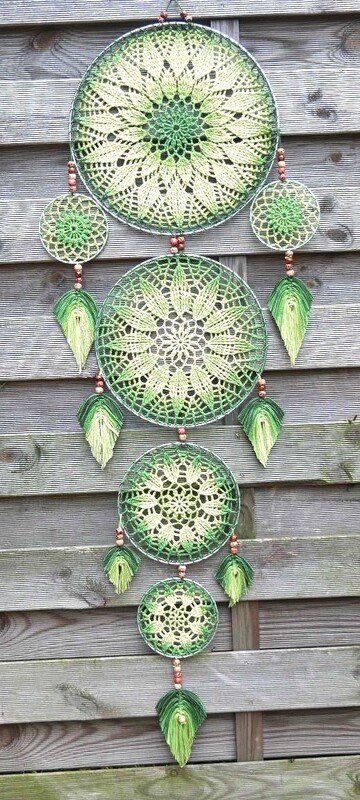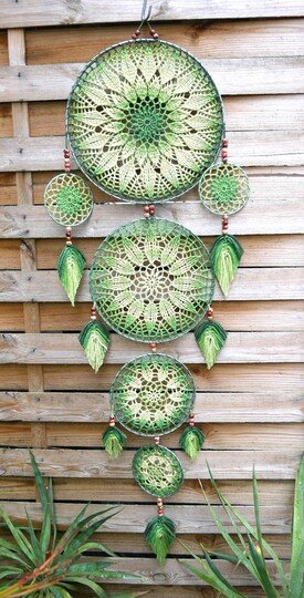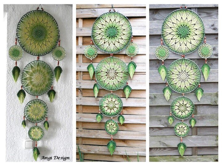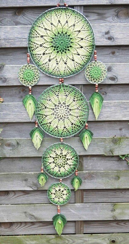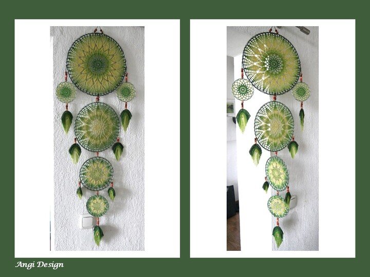 Dieser extra große Traumfänger Harmony mit 6 Ringen, und selbst hergestellten Federn, ist sicher ein absolutes Highlight in deinem Wohnbereich. Er macht sich mit Verlaufsgarn besonders gut.