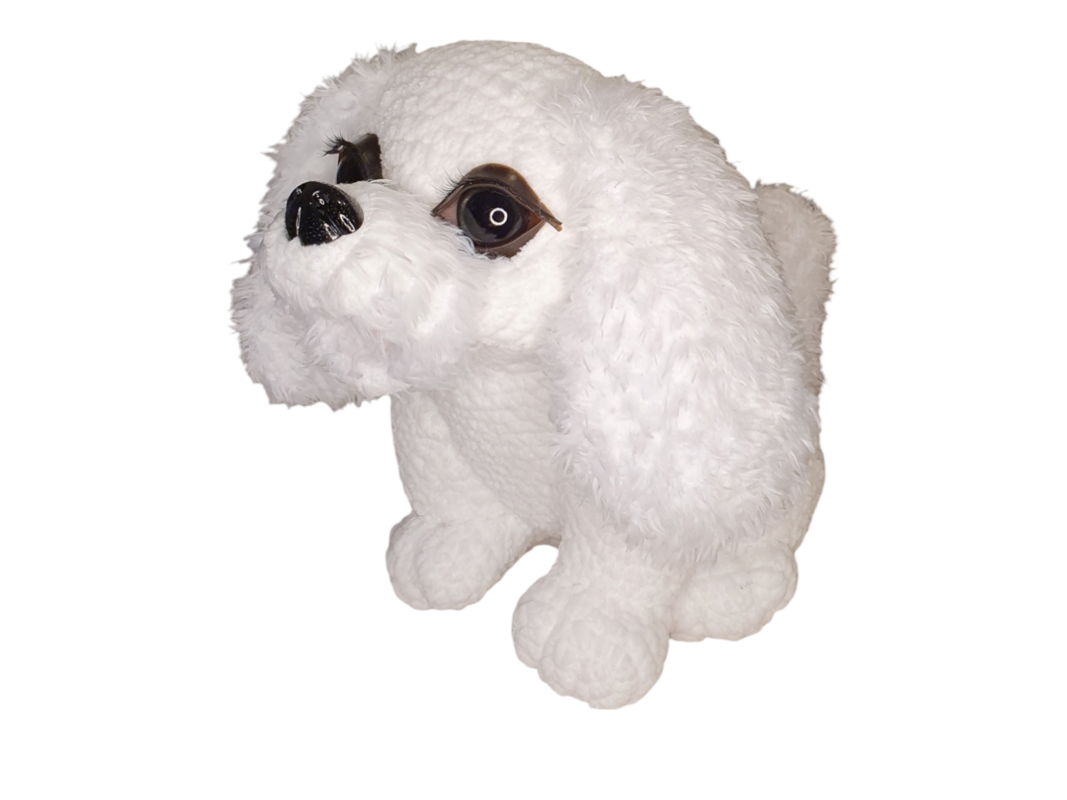 Lilly kann sowohl mit der weichen Chenillewolle, die zum Kuscheln einlädt als auch mit der Fransenwolle die dem Welpen ein „echtes“ Aussehen verleiht gehäkelt werden. Alle notwendigen Einzelschritte sind in der 32-seitigen Anleitung enthalten.