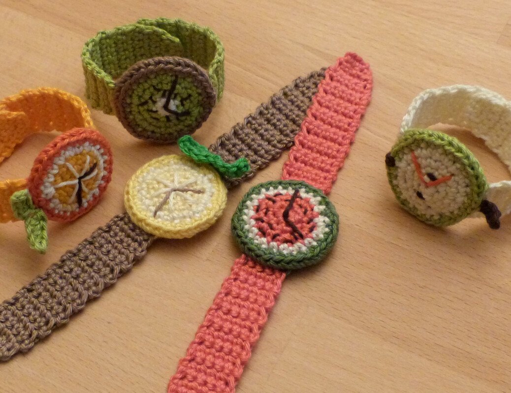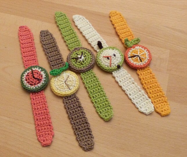 Die Uhren sind schnell gehäkelt und gut geeignet, um Garnreste zu verarbeiten.