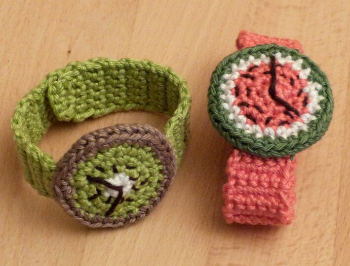 Kleine Kinder imitieren gern die Tätigkeiten von Erwachsenen. Mit einer gehäkelten Armbanduhr am Handgelenk können die Kleinsten sich ganz groß fühlen. An dem weichen Spielzeug kann man sich nicht verletzen, und es geht nicht kaputt, wenn es mal runterfällt! Gut geeignet als Mitgebsel beim Kindergeburtstag!