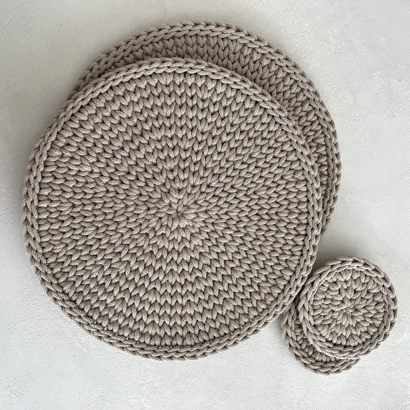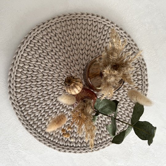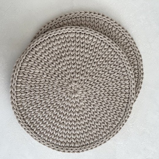 • für ein Platzset (Durchmesser 31 cm oder 37 cm) eine Rolle Baumwollkordel 5mm (100m)