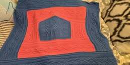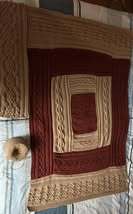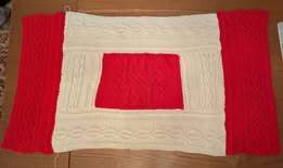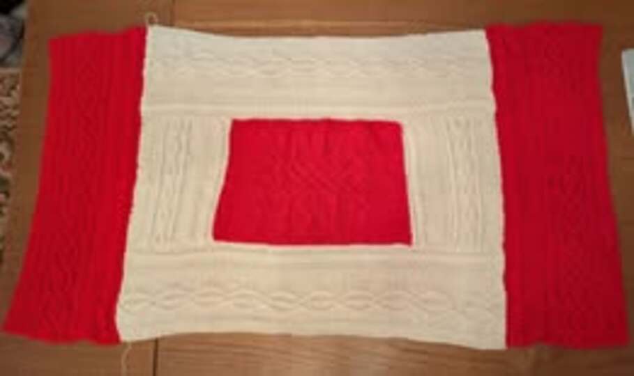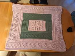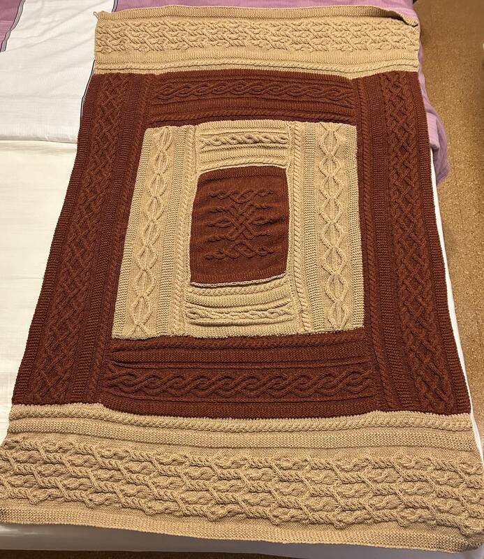 Die Decke besteht komplett aus keltischen Zopfmustern, wird in Streifen gearbeitet, die am Ende zusammengenäht oder -gestrickt werden. Beim Zusammennähen funktioniert am besten der Matratzenstich, der in der Anleitung per Videolink erklärt wird.