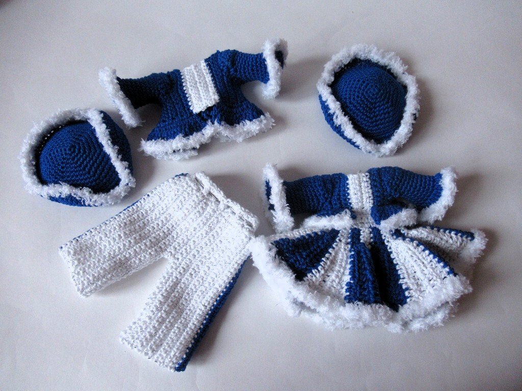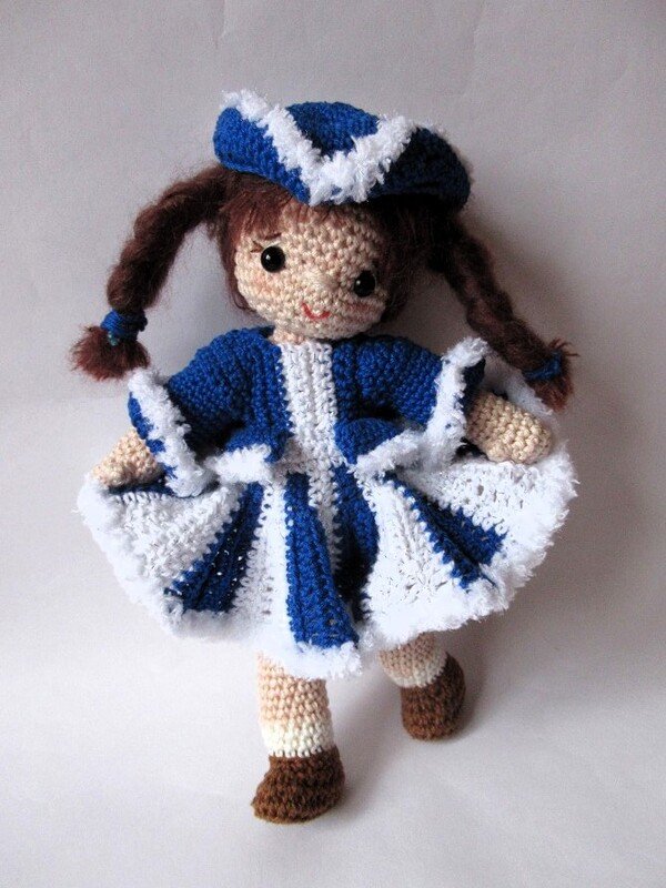 Die Puppen werden mit dem angegebenen Garn etwa 20 - 25 cm groß. Die Kleidung passt auch anderen Puppen in dieser Größe.